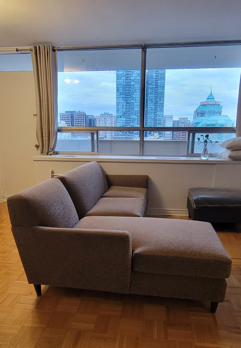 Brown 2pc Chaise Sectional Sofa in great condition. Sturdy & firm seats, with comfortable form. Needs 2 people to move it by hand. I can help if you come alone. RFS: Redecorating Delivery: Pick-Up Only @Wellesley & Jarvis Payment: eTransfer Time: Weekday Evenings or Weekend All-Day Smoke-free, pet-free, and child-free home