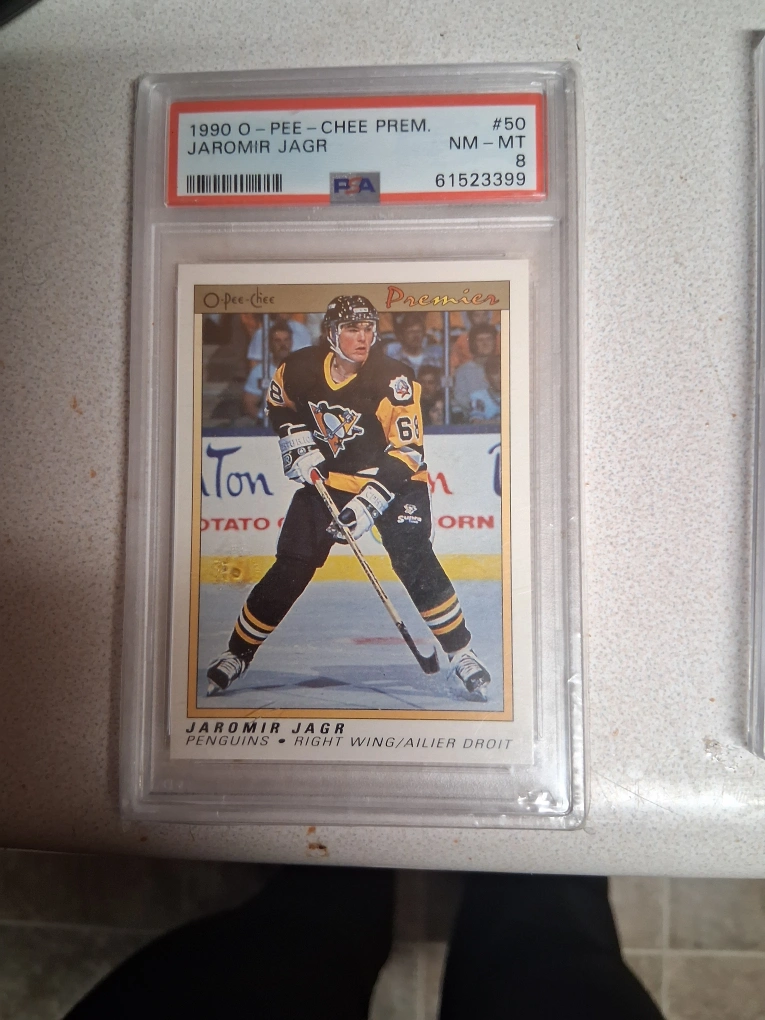 Selling a 1990 O-Pee-Chee Premier Jaromir Jagr hockey card. It's graded NM-MT 8. Card number #50. Great for any hockey card collector!