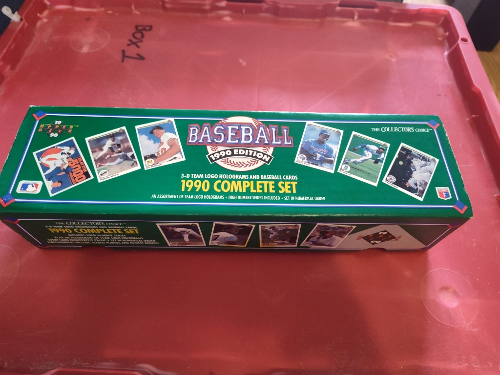 Selling a 1990 Upper Deck Baseball Card Complete Set. It's the Collectors Choice, with 3-D team logo holograms and baseball cards. An assortment of team logo holograms and high number series are included, and it's set in numerical order $25 per box set