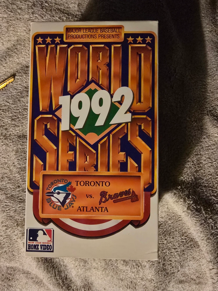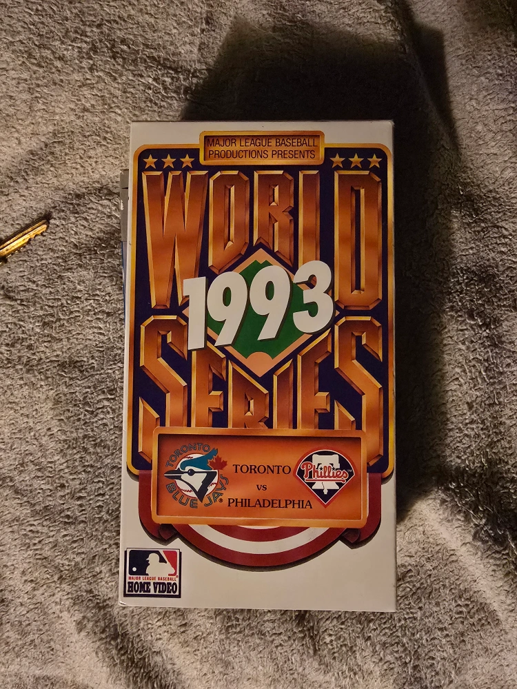 Three VHS tapes: 1992 World Series featuring the Toronto Blue Jays versus the Atlanta Braves and 1993 World Series featuring the Toronto Blue Jays versus the Philadelphia Phillies. Includes a bonus tape, 'Oh! Canada', detailing the 1993 Blue Jays World Series win. Major League Baseball Productions.