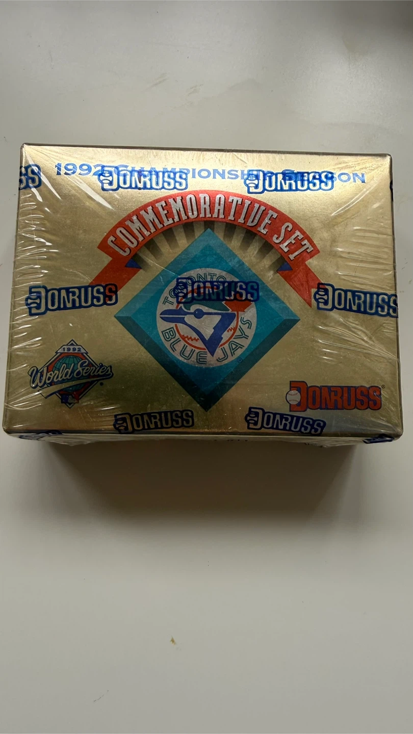Selling a 1992 Donruss Commemorative Set for the Toronto Blue Jays. This special 54 card set commemorates the Blue Jays march to their first World Series Championship. Each player who graced the 1992 roster is featured on a card highlighting highlights from each World Series game. This unique set is a must for every Blue Jays card collector! It also includes 9 foil stamped World Series highlight cards