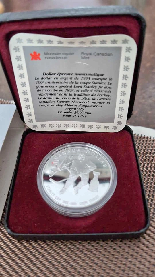The 1993 Silver Dollar that marks the 100th anniversary of the Stanley Cup, donated by Governor General Lord Stanley in 1893. Feel free to message if you have any questions!