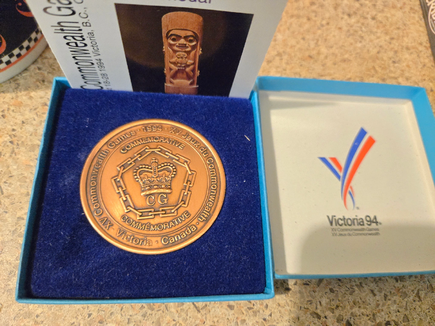 Selling a commemorative medal from the 1994 Commonwealth Games in Victoria. It's in its original box and looks to be in great shape! A nice piece of Canadian sports history