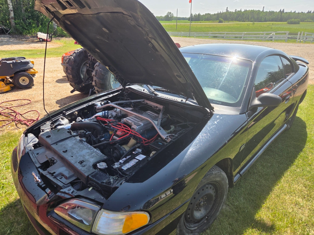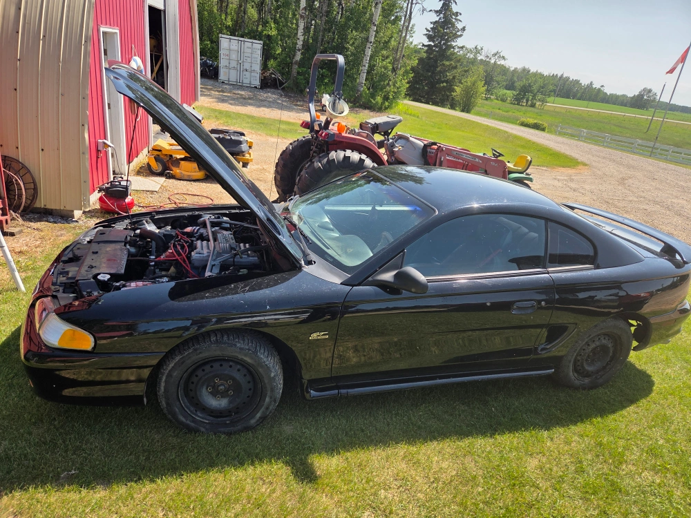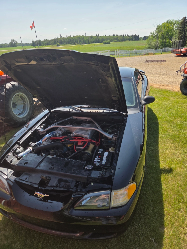 Selling a black Ford Mustang coupe. last year of the 5.0L, msd ignition,5spd, power pullys,gt40 heads,cobra pistons, 10000km on fresh rebuild, full intake,headers,exhaust,stabilizer bar, very strong engine, body no rust, 3000obo very fast.