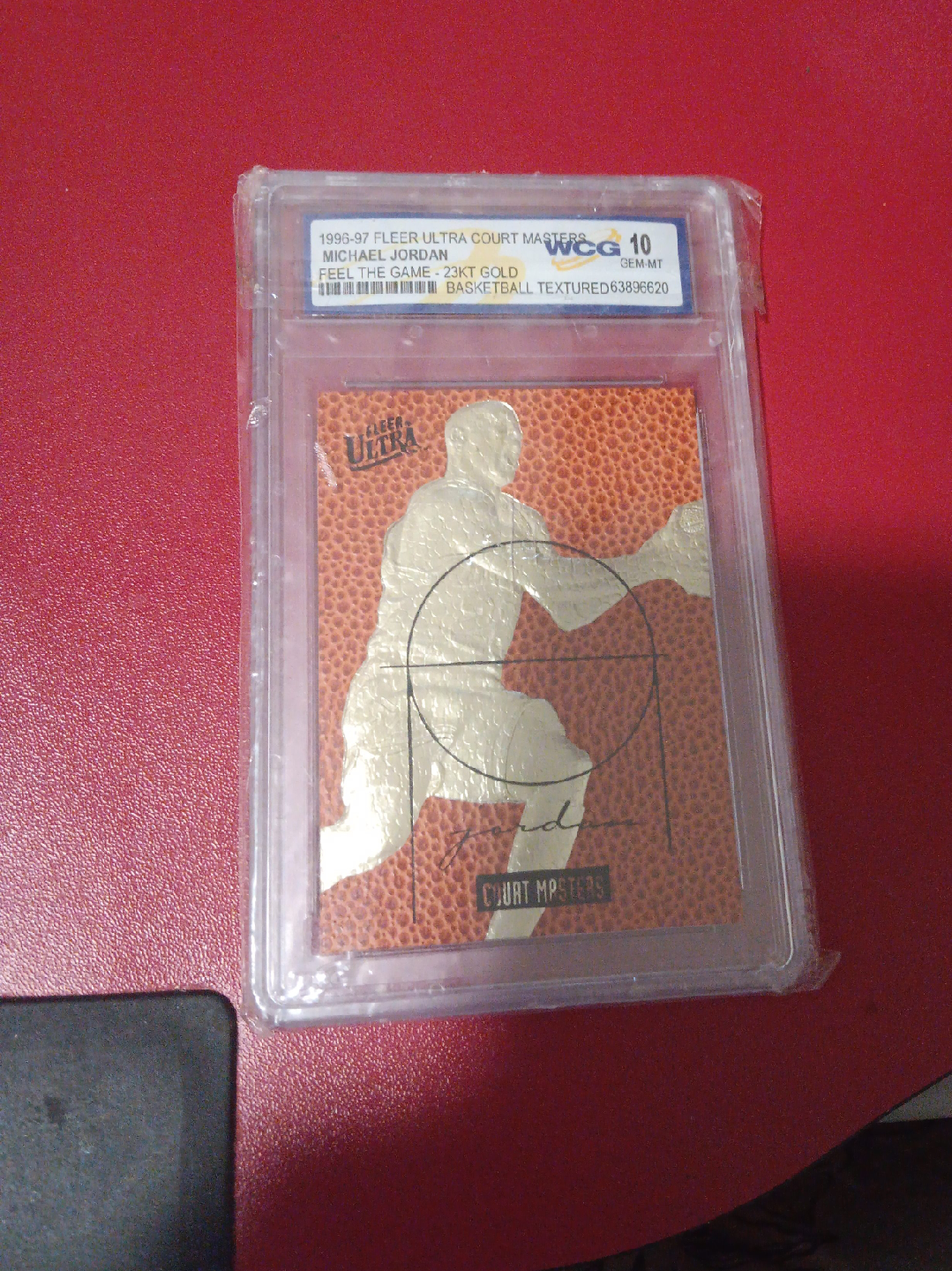 Selling a 1996-97 Fleer Ultra Court Masters Michael Jordan card. It's a Feel the Game - 23KT Gold card with a basketball textured design. A great collectible for any basketball or Michael Jordan fan!