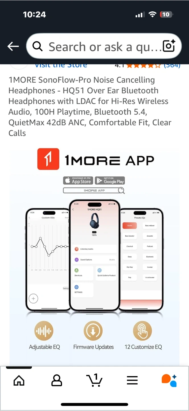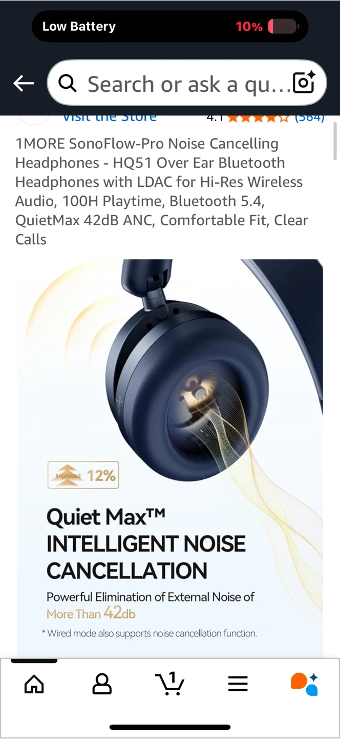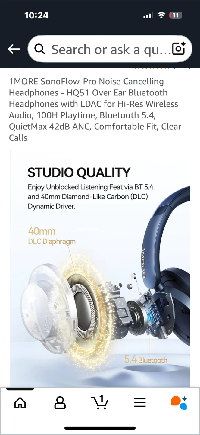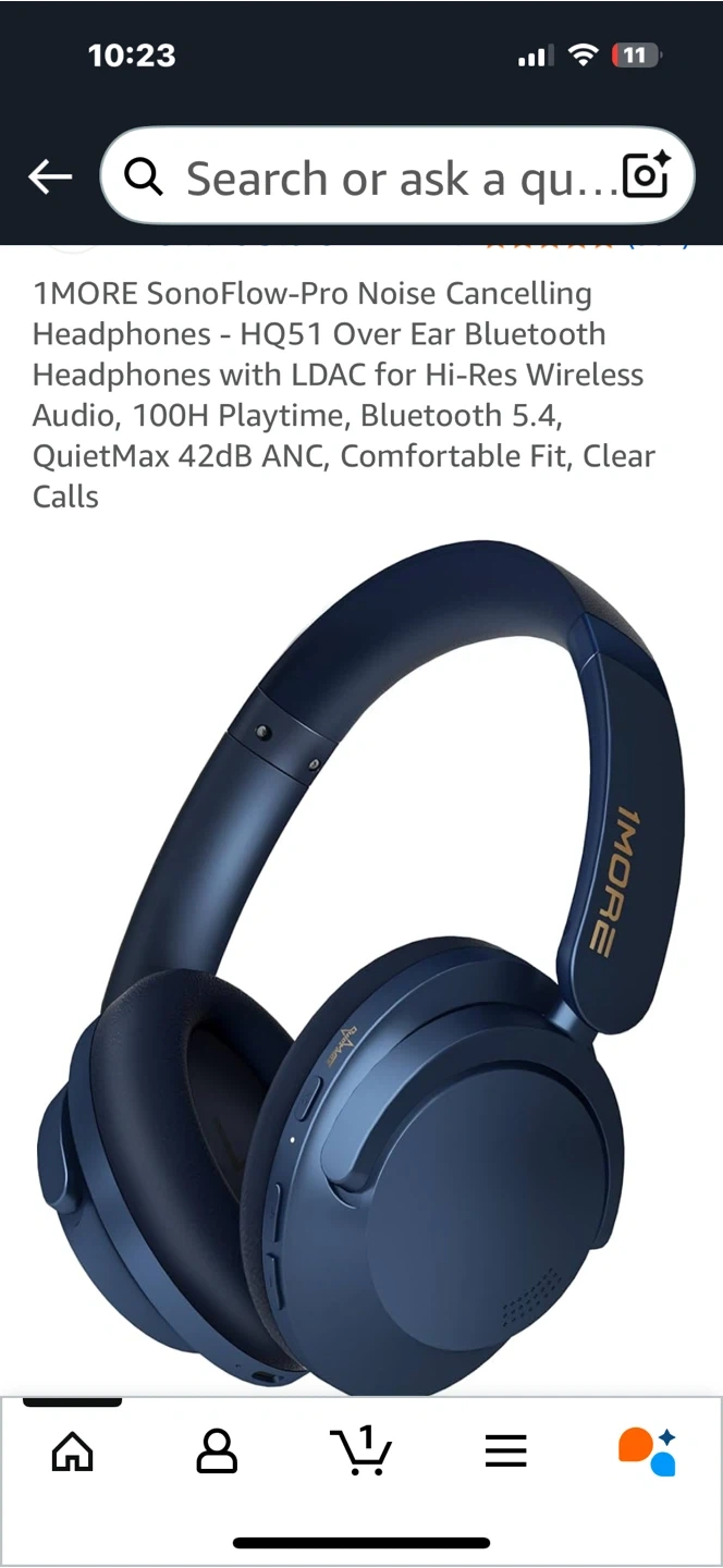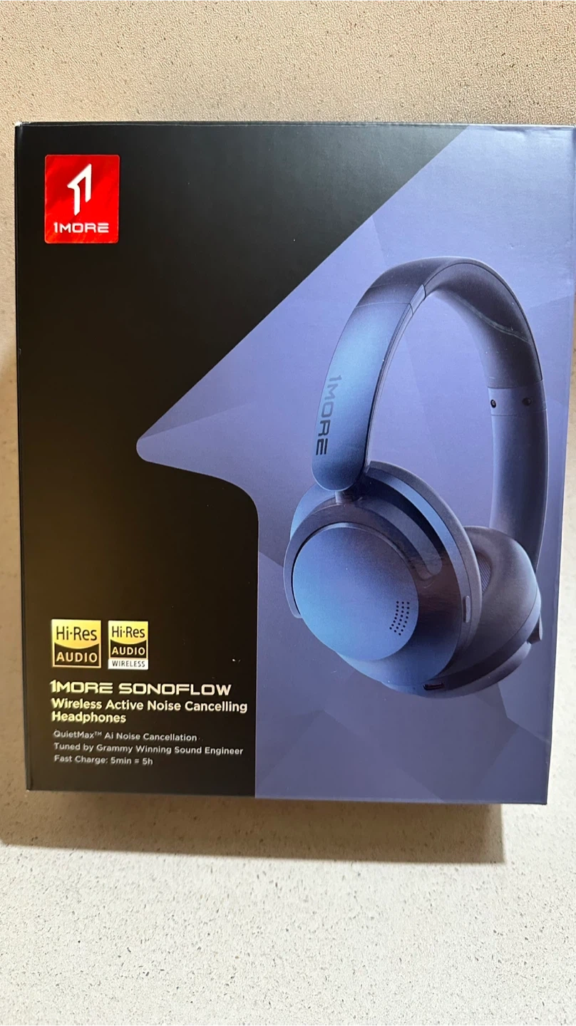 Selling a pair of 1MORE SonoFlow Pro noise-cancelling headphones in blue! These over-ear Bluetooth headphones offer hi-res wireless audio and boast a 100-hour playtime. They feature Bluetooth 5.4, QuietMax 42dB ANC, and clear call technology. Comes with the original box!