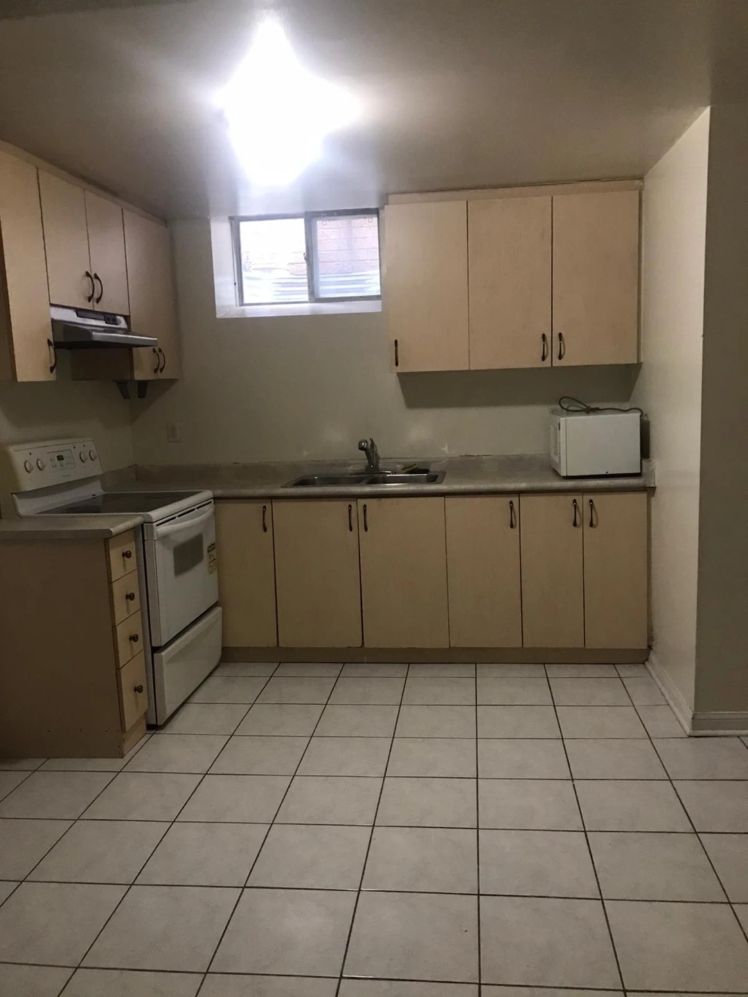 2 Bedroom Basement Apartment for Rent Spacious and well-maintained basement featuring 2 bedrooms, 1 bathroom, and a full kitchen. Conveniently located near public, middle, and secondary schools. Just steps away from bus stops, plazas, parks, and gyms, everything you need within easy reach. Perfect for small families, students, or working professionals.