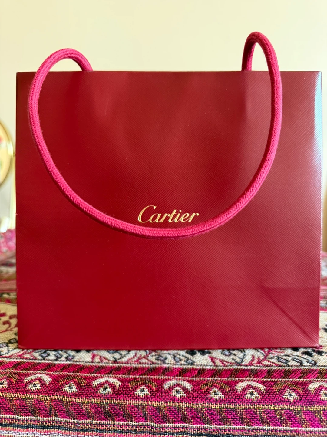 β β MEETING LOCATION: Scarborough Town Centre Mall & Cash payment only 2 authentic Cartier gift bags $10.00 each, buy 1 or 2 bags. π BUY 1 or Both! ***Perfect for adding a touch of luxury to your presents or collections. These bags feature the iconic Cartier red with gold lettering and sturdy pink rope handles. The bag is made with high-quality, durable paper stock. **CONDITION: 10/10. Excellent!! Has only been used once when receiving gifts in it. **DIMENSIONS: 8 X 8 inches (approximately).