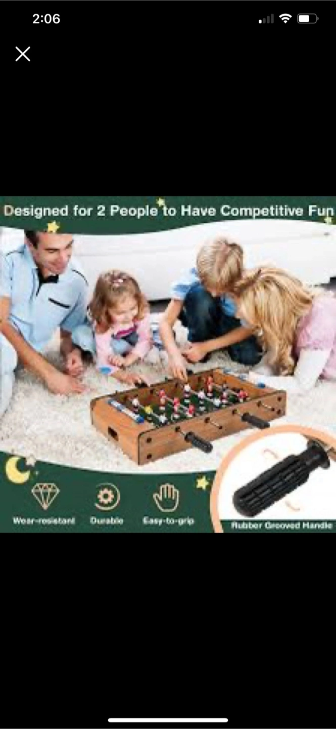 2 Games - Table Foosball, Chess Games Set Here's some fun games! It's in great shape and ready for some fun. Table Foosball Soccer/Football Game Portable Chess Game Darts Wall Board (Darts sold separate) * TABLETOP FOOSBALL FUN: Premium foosball table is great for kids and adults; Accommodates 2-4 players and includes soccer foosball, * * PORTABLE COMPACT SIZE: Larger than similar mini game tables, but small enough to fit on most tables and desks without compromising gameplay; Easy to store after playing unlike traditional foosball tables * * MODERN DESIGN: Ditch the cheap looking toy tables; Our foosball features an updated style that complements any home; Modern finish with players made from durable plastic for long term use; Features upgraded ergonomic handles for comfort and accuracy * * SIMPLIFIED SETUP: Players come pre-installed on rods for zero hassle assembly; Includes illustrated step-by-step instructions and installation video guide * * GET KIDS UNPLUGGED: Improves hand-eye coordination and encourages kids to engage in friendly competition; Perfect entry level table for kids to learn foosball GoSports Tabletop Foosball Game provides all the fun of full size foosball on a smaller scale! foosball table fits almost any desk or table and is easy to play anytime, anywhere. Unlike comparable tables, it features a modern design that sets it apart from other lower quality toy tables. It's the perfect beginner table for any new player and is great for ages. Give the kids something they'll love with GoSports Tabletop Foosball Game! Comes with a portable chess set Includes all 2 together Cheap - message me Can be picked up or delivered
