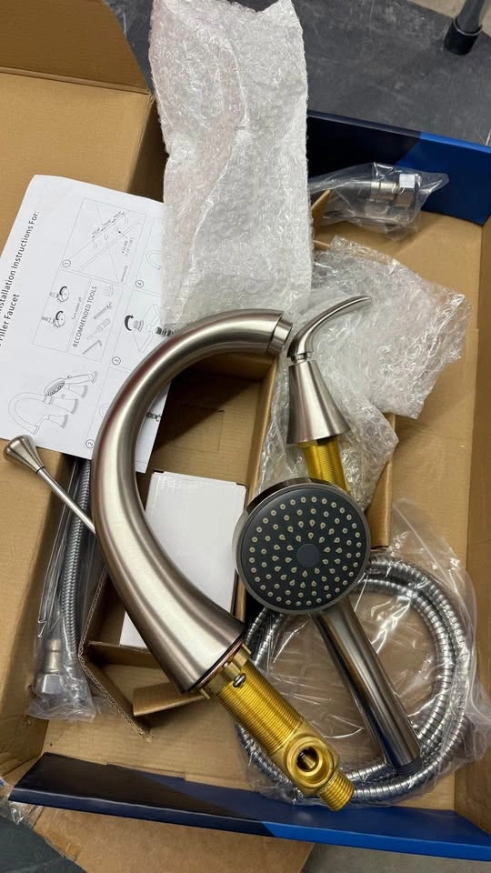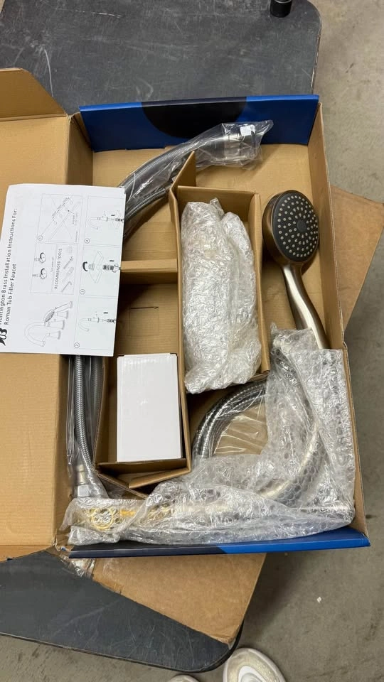 Huntington Brass Trend four-piece roman bathtub filler faucet with pull-out single setting hand shower in a beautiful finish. Contemporary styling to add a high-end style to your bathroom along with the durable all-metal construction. Condition: New in box Size : Check images Pickup: SmartStop, 2055 Cornwall Rd, Oakville, ON L6J7S2 Cash only! A stylish and functional upgrade for your home —first come, first served! 🏡✨