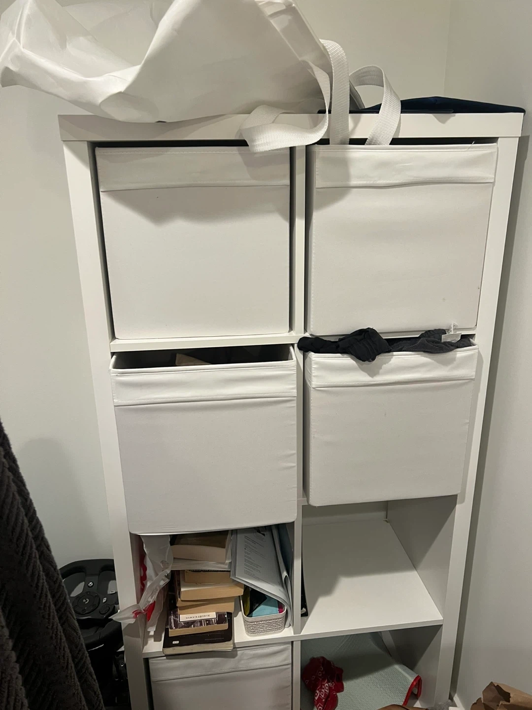 Selling an Ikea Kallax shelf unit. It's in good condition and ready for a new home. Perfect for organizing books, toys, or anything else you need to store. The unit features multiple compartments for versatile storage options
