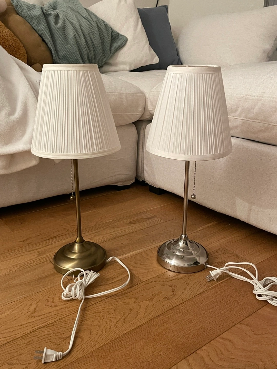 2 Ikea light fixtures for $30. One is for $20. Excellent condition, no tears no stains One silver and one gold. Regular price is $27.99+tax each