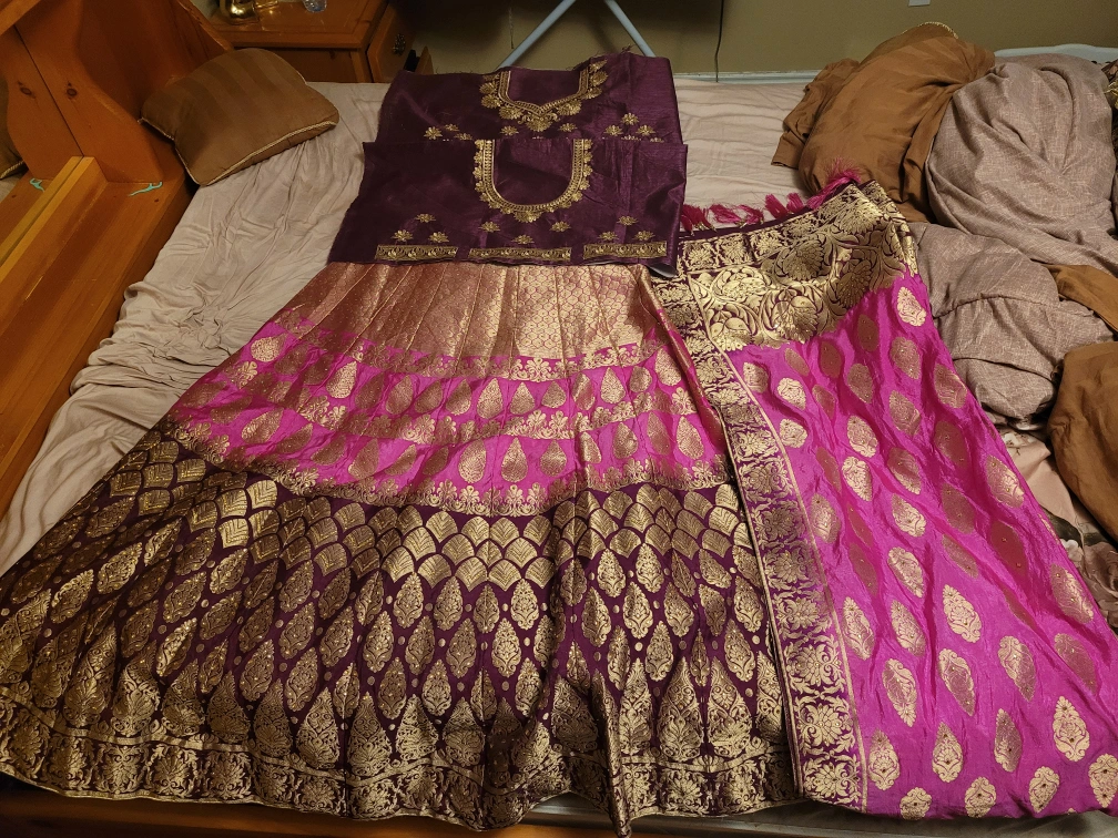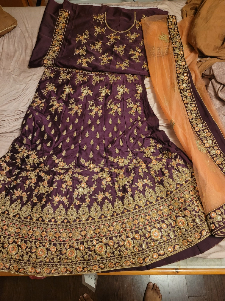 Beautiful Indian wedding lehengas. Includes the skirt, top, and matching scarf. There is intricate embroidery. This outfit will look gorgeous at any special event, like a wedding. $65 each