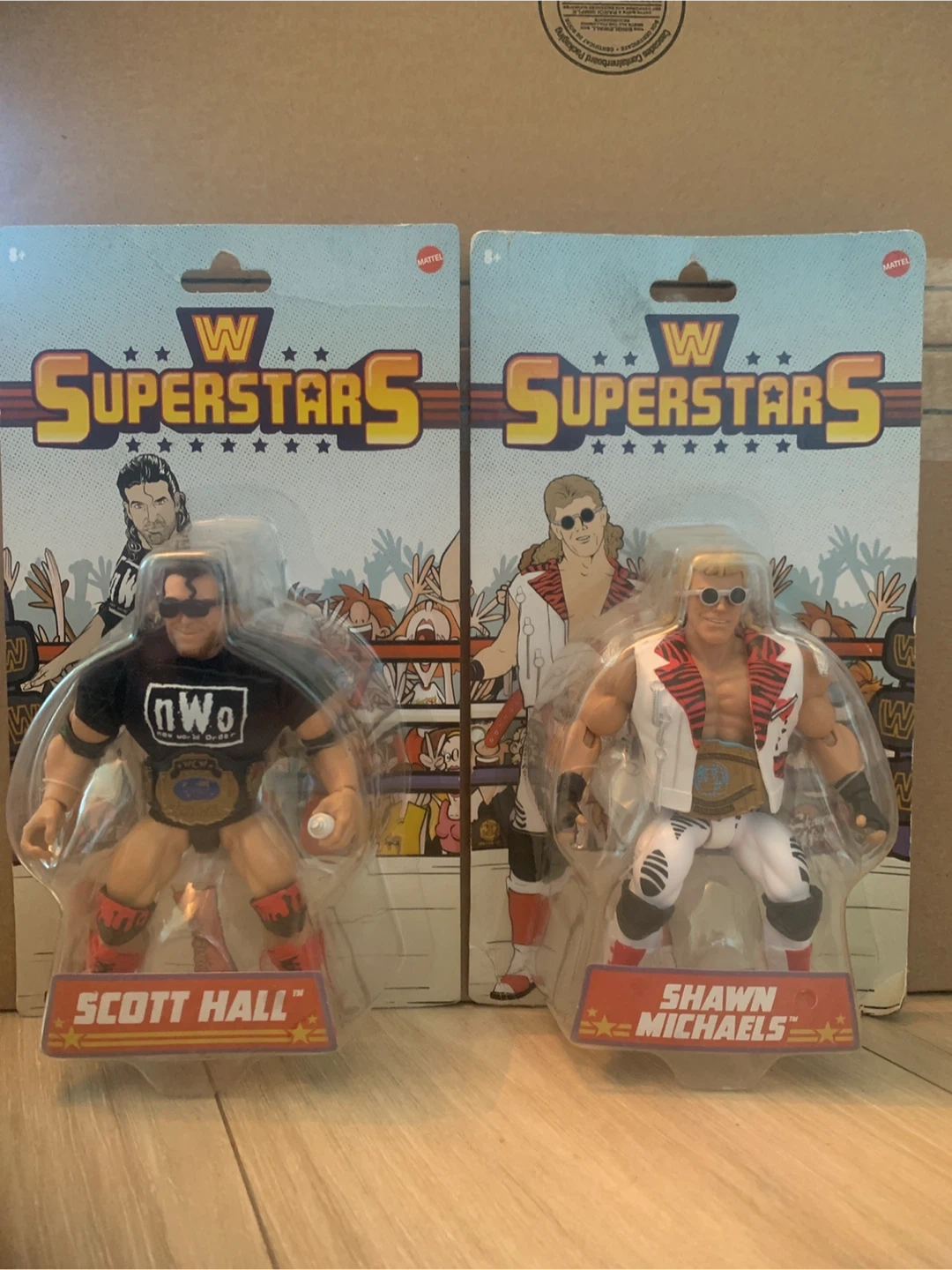 Selling two Mattel WWE Superstars action figures! You'll get Scott Hall and Shawn Michaels. Both are still in their original packaging and in great condition. Perfect for any wrestling fan or collector! $15 for one