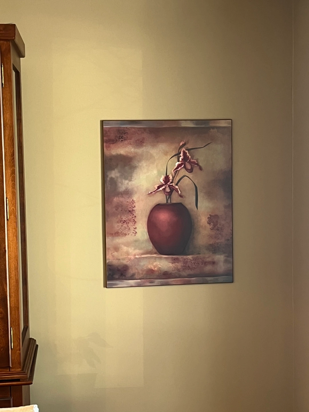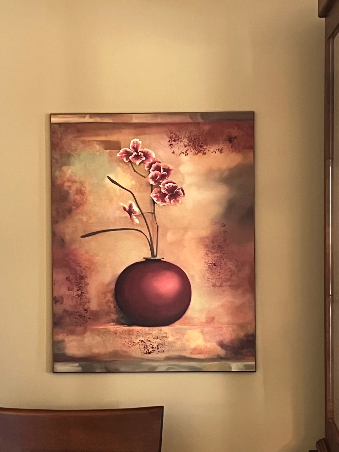 Beautiful piece of wall art featuring a floral arrangement in a vase. The colours are warm and inviting, perfect for adding a touch of elegance to any room. It's in great condition and ready to find a new home! 2 pieces.