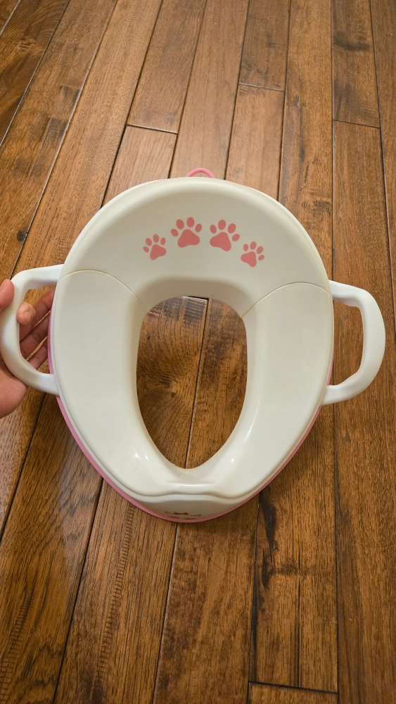 I have two potty training seats available! One is white and pink with paw prints and a cute cat design, and the other is a bright blue colour. They're both in good used condition and ready for a new home to help with potty training