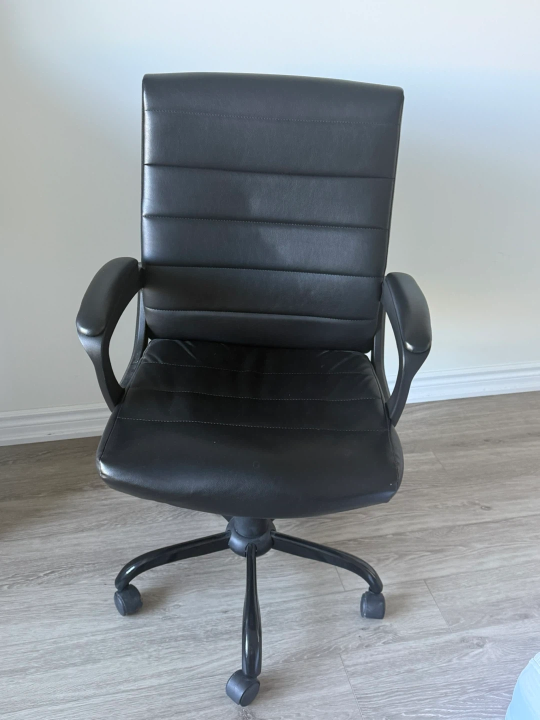 Selling a black office chair that's perfect for your home or workspace. It's in great condition and ready to provide comfortable support during those long work sessions