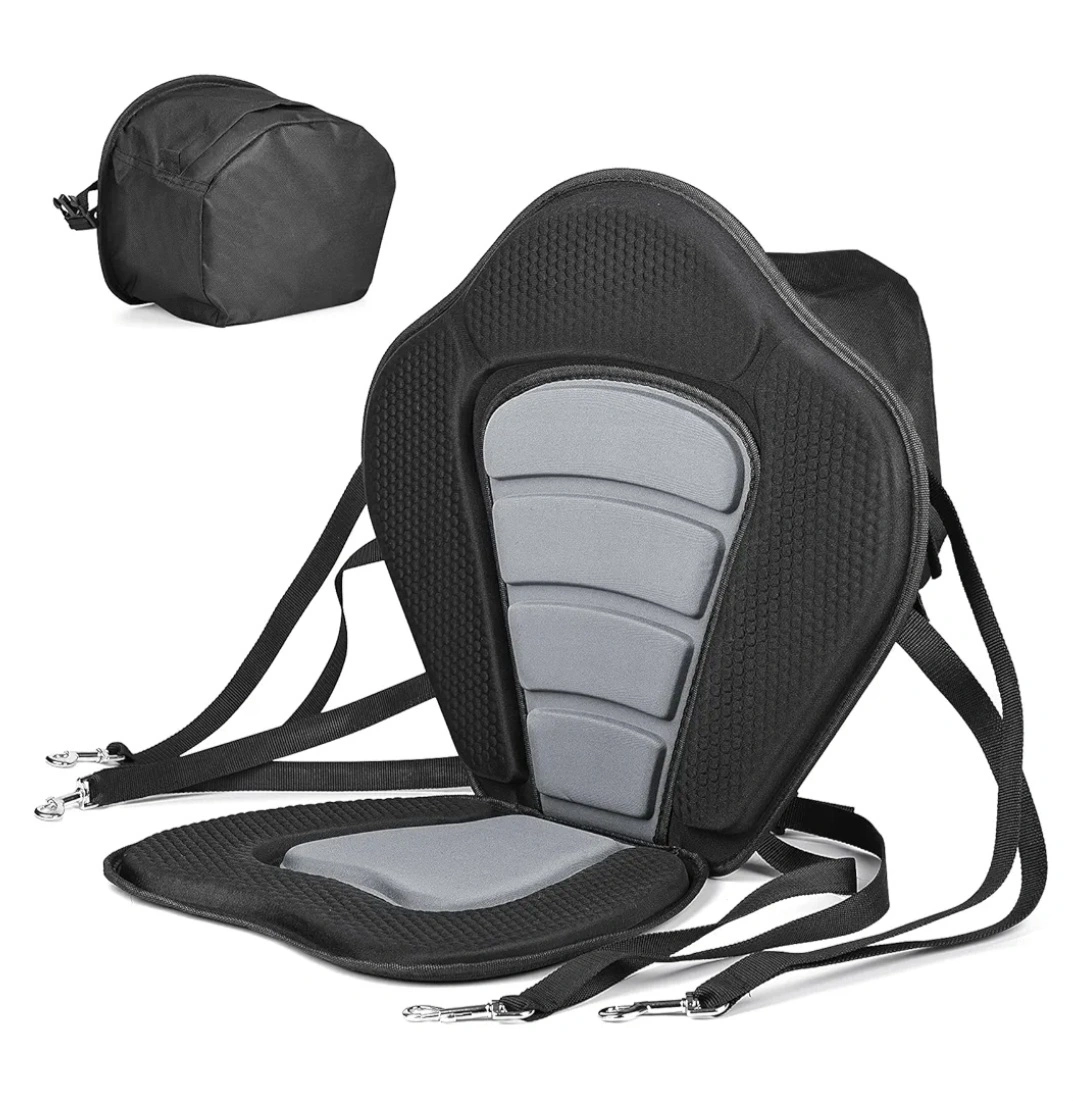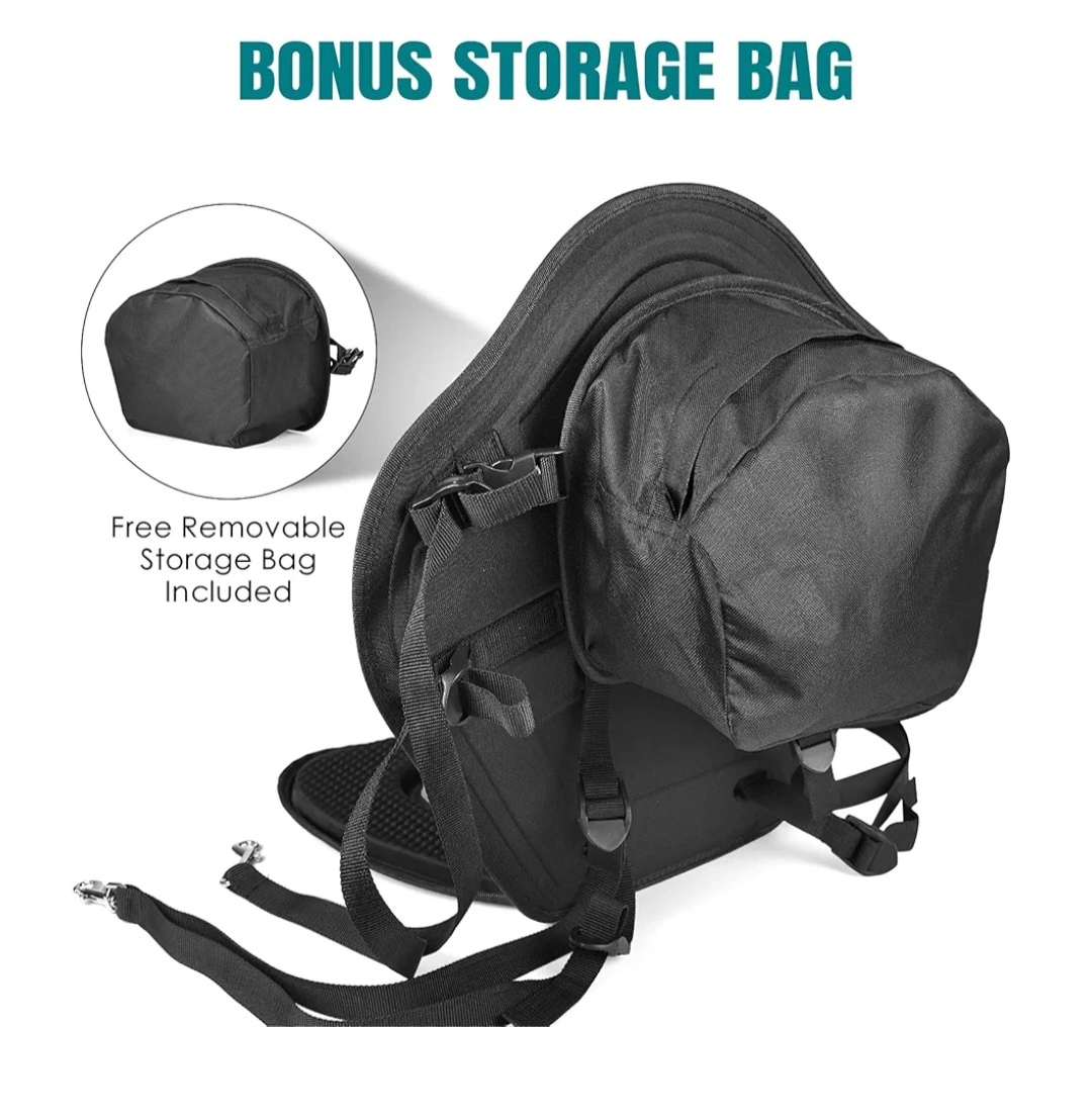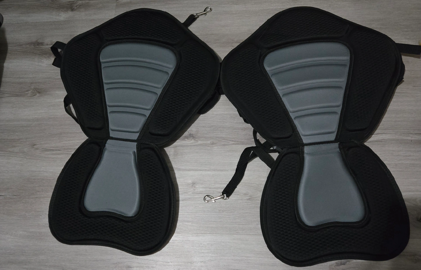Selling a kayak seat that's super comfy and adjustable! It's padded for extra support during those long paddles. The seat is detachable and comes with a handy storage bag, making it easy to carry around. Dimensions are approximately 21 x 18 inches. Perfect for upgrading your kayaking experience!