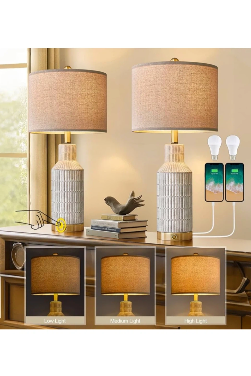 This table lamp is perfect for adding a touch of style to any room. It features a built-in USB charging port, so you can easily charge your devices. The lamp has a neutral colour scheme that will complement any decor. Set of 2
