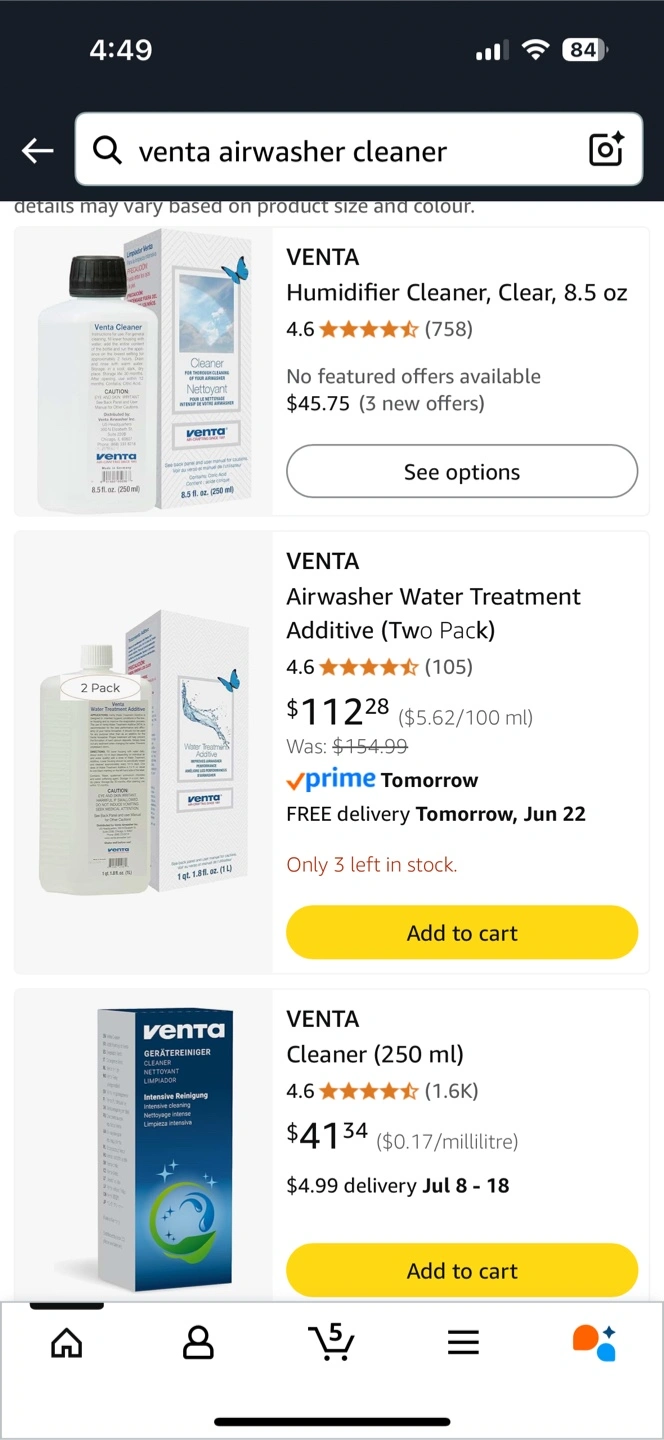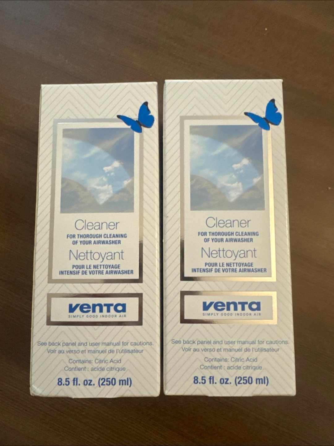 Selling two bottles of Venta Airwasher Cleaner. Each bottle contains 8.5 fl oz (250 ml) of cleaner, perfect for keeping your airwasher in top condition! Contains citric acid.