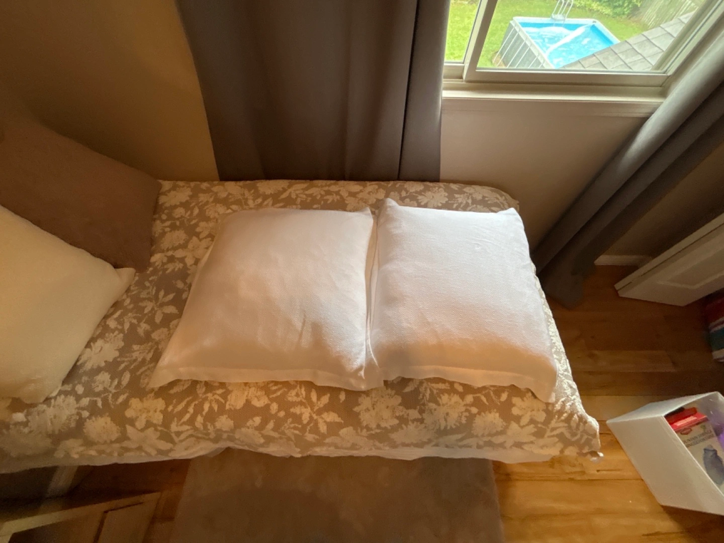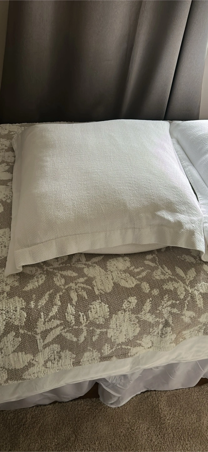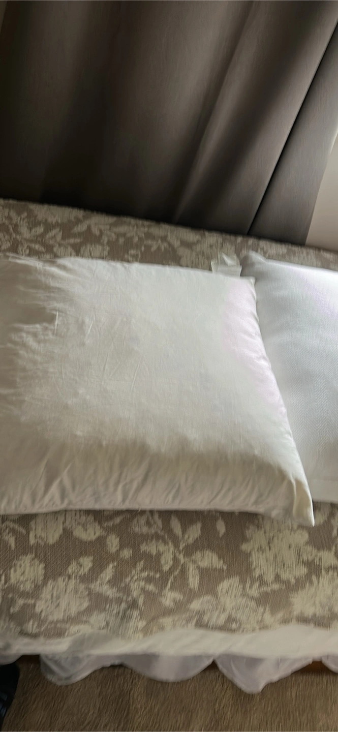 Selling two white feather/down filled pillows with white covers. They are in good condition they are big pillows. 24” x 24”. Selling for $8 each