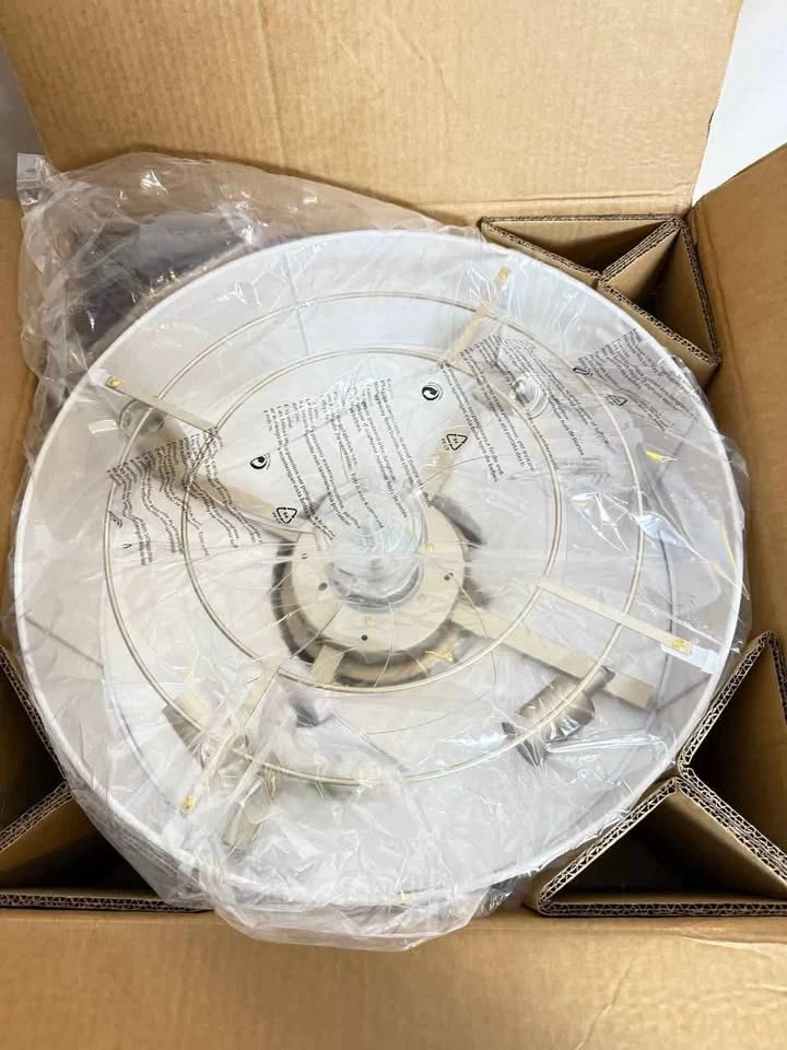 Brand new / great condition. 20” boho rattan ceiling fan with light and remote control. 6 adjustable fan speeds and independent lighting control. Whisper-quiet operation with reversible motor for year-round comfort. 4 E26 bulbs compatible with LED, CFL, or incandescent (up to 60W). Timer function for automatic shut-off (1, 2, or 4 hours). Easy installation with pre-assembled components. Elegant boho design enhances bedroom, nursery, or living room décor.