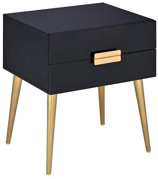 Transform and inspire the ambience of your living room or bedroom with this sleek, contemporary end table. It is elegantly designed to seamlessly fit into any existing home setting. Featuring a wooden top cum drawer finished in high gloss white fa?ade and metal tapered legs with drawer pull accented by gold finish. Let our sparkling end table warm your heart with sophistication and style in any corner of your home whether in the living room, bedroom or hallway. Item is located in Port Robinson, if the item is listed its available.