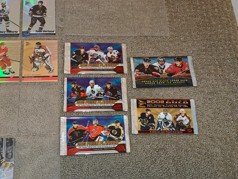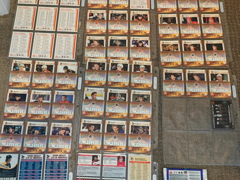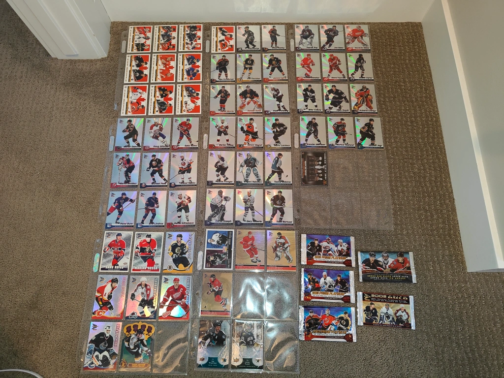NOTE: NONE of the McDonalds Hockey Trading Card Sets are a Complete Set, please see list of cards included. I am selling a Partial 2000-01 McDonald's Pacific Prism Hockey Trading Cards, Partial 2001-02 McDonalds Base Set Pacific Prism Gold Hockey Trading Cards, Partial 2002-03 McDonald's Pacific Atomic Hockey Trading Cards, and Partial 2009-10 McDonalds Upper Deck Hockey Trading Cards in excellent condition. Includes: * Partial 2000-01 McDonalds Base Set Pacific Prism Hockey Trading Cards - 8 Cards * Partial 2001-02 McDonalds Base Set Pacific Prism Gold Hockey Trading Cards - 4 Cards * Partial 2002-03 McDonalds Base Set Pacific Atomic Hockey Trading Cards - 48 Count (Includes: Salt Lake Gold Checklist cards (Complete) & Base Set (Missing 4 Cards - See below on list of missing cards) * Partial 2009-10 McDonalds Base Set Upper Deck Hockey Trading Cards - 2 Cards * 8 Ultra ProTrading Card Sleeves * 5 Opened Empty Foil Packs (1 x 2002 Prism Gold, 3 x 2003 Prism Platinum, 1 x 2009 Upper Deck) 2000-01 McDonald's Pacific Prism Hockey Trading Cards Included: * 4 - Thornton * 6 - Bure * 8 - Forsberg * 15 - Yzerman * 35 - Potvin * 3 - Gold Crown Die Cuts - Legwand * 4 - Player Checklist - Koivu * 5 - Player Checklist - Hossa 2001-02 McDonald's Pacific Prism Gold Hockey Trading Cards Included: * 11 - Fedorov * 12 - Hasek * 26 - Hossa * 2 - Player Checklist - Kariya-Morrison 2002-03 McDonalds Missing Cards * 18 - Allison * 22 - Theodore * 30 - Lalime * 38 - Sundin 2009-10 McDonalds Upper Deck Hockey Trading Cards Included: * 16 - Turco * 40 - Thornton Comes from a pet and smoke-free environment. Pickup in Mount Pleasant (NW Calgary)