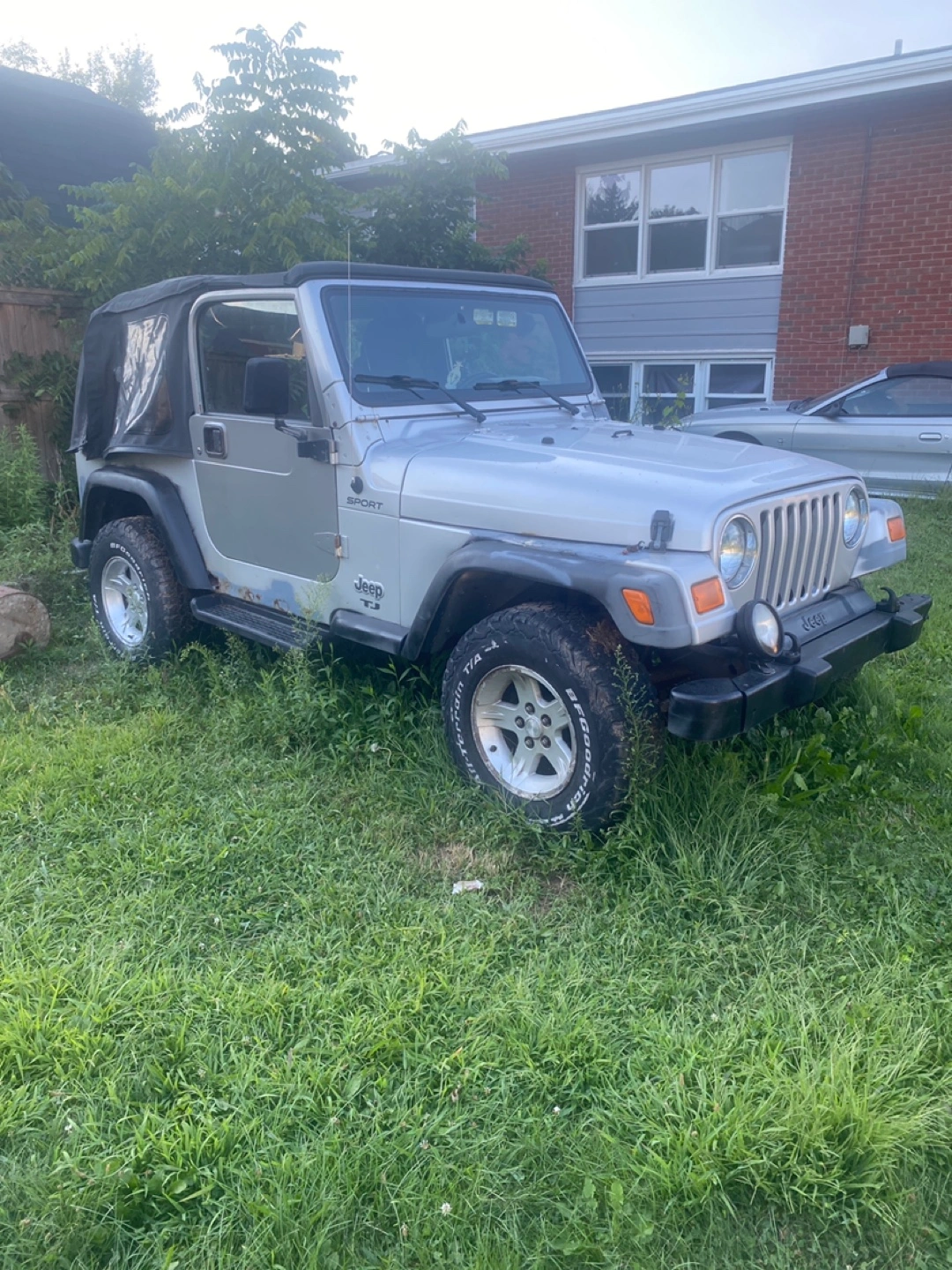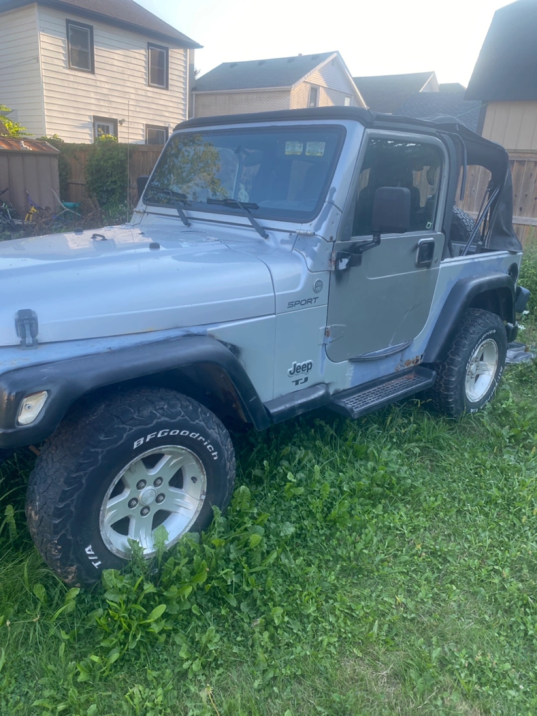 Selling a Jeep TJ Sport convertible. It has some wear and tear, but it's ready for some fun adventures. The tires are BFGoodrich. It includes a soft top. Straight 6 Cylinder. 4x4 Tj Sport Edition