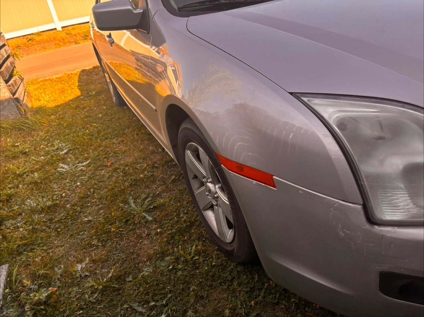 Selling a 2009 Ford Fusion in silver. There are some scratches and dents on the body, as shown in the photos.