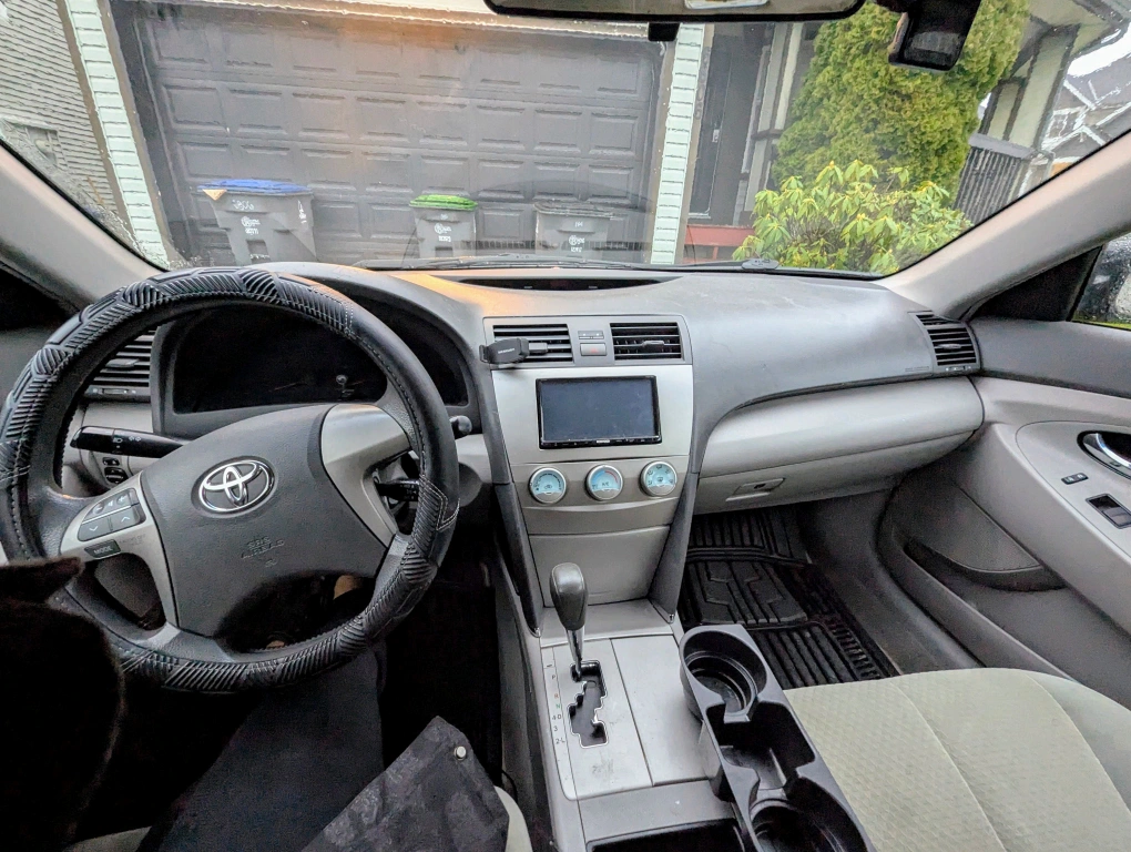 Selling my 2009 Camry LE because I’m moving to Quebec. 250,000 km, runs awesome, well cared for! What You Get:Power windows, mirrors, Bluetooth audio, 2.4L engine, 9-10 L/100 km (23-26 MPG) 5-speed automatic, clean seats, cold AC, Dash camera installed. Extra set of tires with alloys. Why It’s Great: Oil and filters changed last month, New Battery, Brakes done 3 months ago, spent $1100 on new rotors and pads. Mechanic checked 1 month ago Minor: cracked tail light (see video), small dent and right rear-tire needs a sensor replacement of $200 but I have been driving the car for 4 years like this and had no problems. Price: $6,000 Cash only, no trades. Moving soon priced to sell fast! Message for test drive or pics!