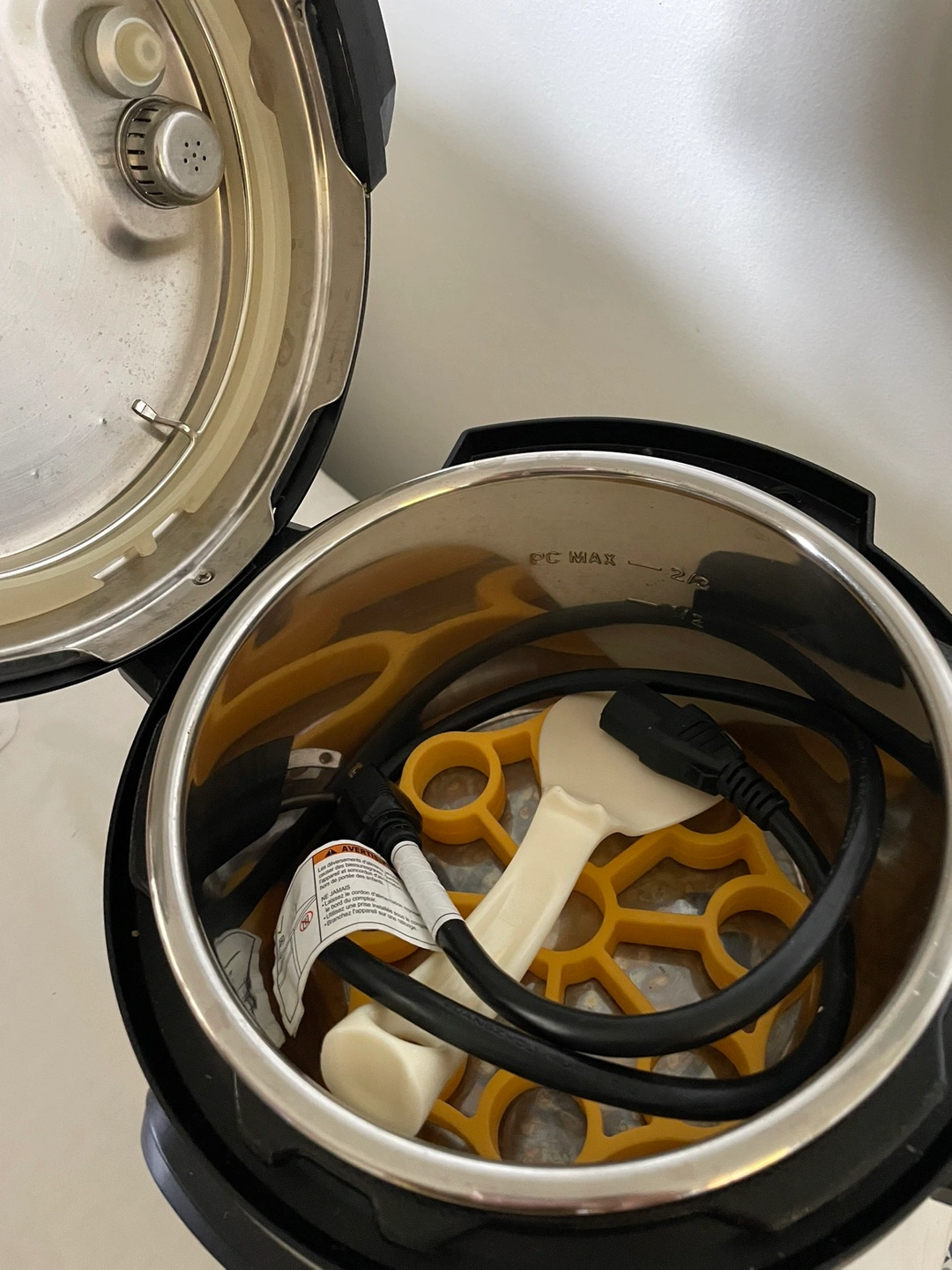 Instant pot in good condition Please see damage on handle picture - plastic melting from accidentally placing on stove, doesn’t affect function Comes with egg holder, spatula, and extra inner pot Pick up only at or near Nanaimo station