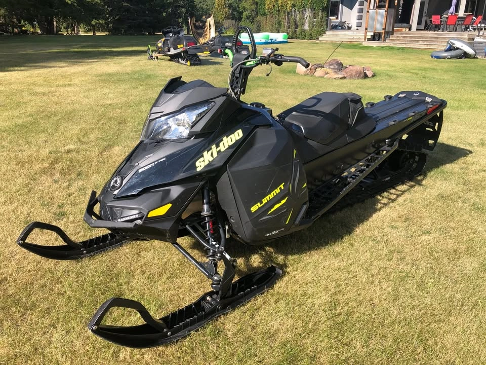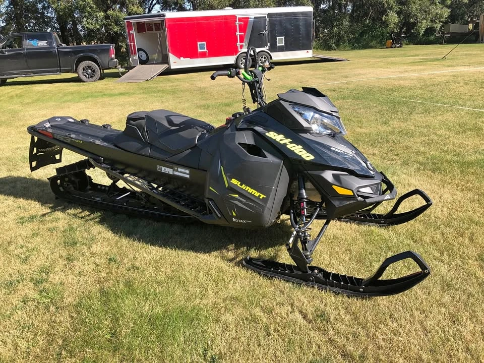 2014 Summit X 163 2.6”, w/ 3,500 km. Sled runs and drives great. No ripped lugs, Starts first pull. Sled is super straight. Fresh service. Ready to ride! Skins Rasmussen Front bumper and Ski Doo Ski plate, CFR Lime green bars, SLP Ceramic coated Y pipe and expansion chamber, MBRP Race can (Loud but not the loudest, not the one in the picture). I also fixed the vent grill on the right engine cover. This sled has been maintained from the start, I bought a new sled so I really don’t need this sled anymore, completely straight and ready for the mountains. NOT LOOKING FOR TRADES!