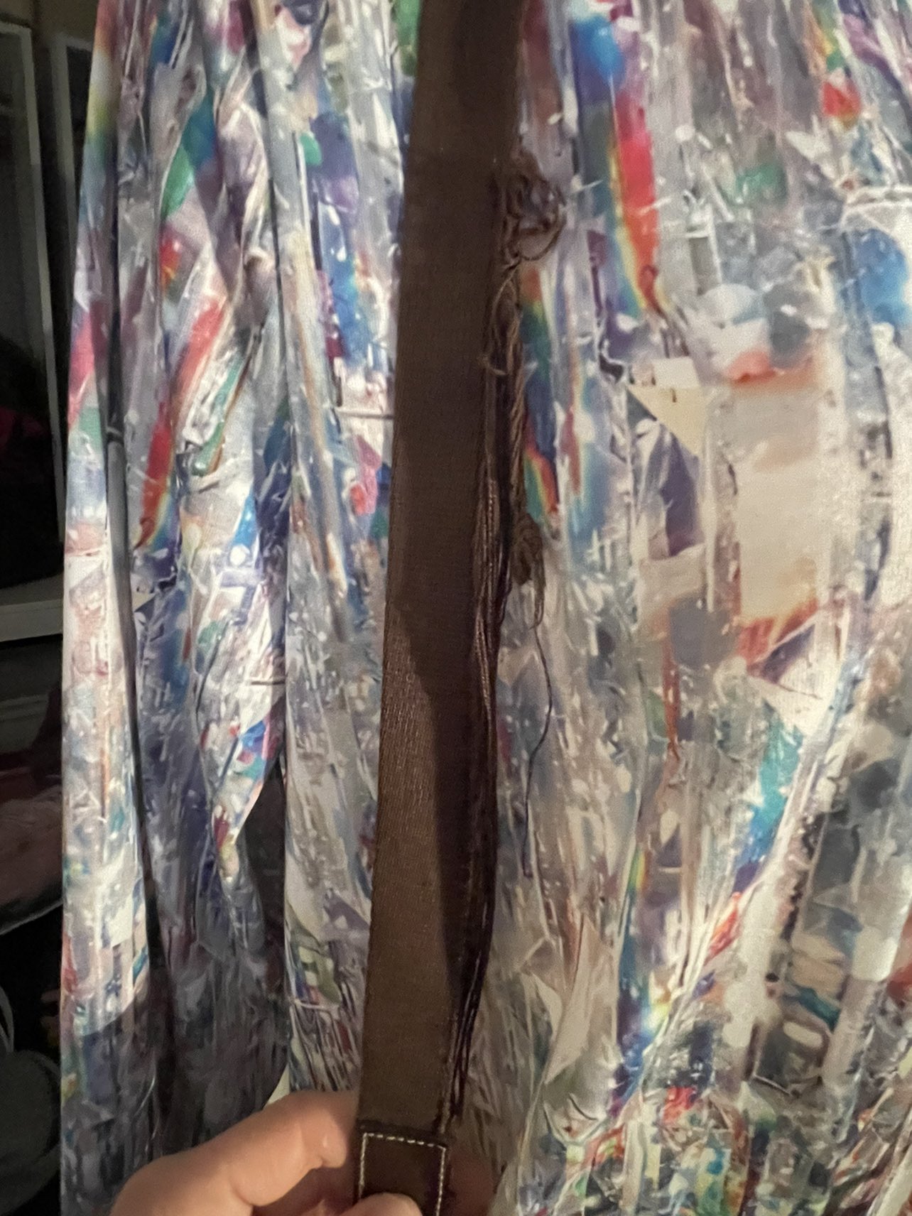 This crossbody Coach purse still has A lot of life in it. In Great condition just one side of strap is shredding. It Has adjustable straps, (as you see in picture) one strap is shredding but it can easily be replaced or fixed. Great Coach Crossbody purse. *Lobby Pickup*