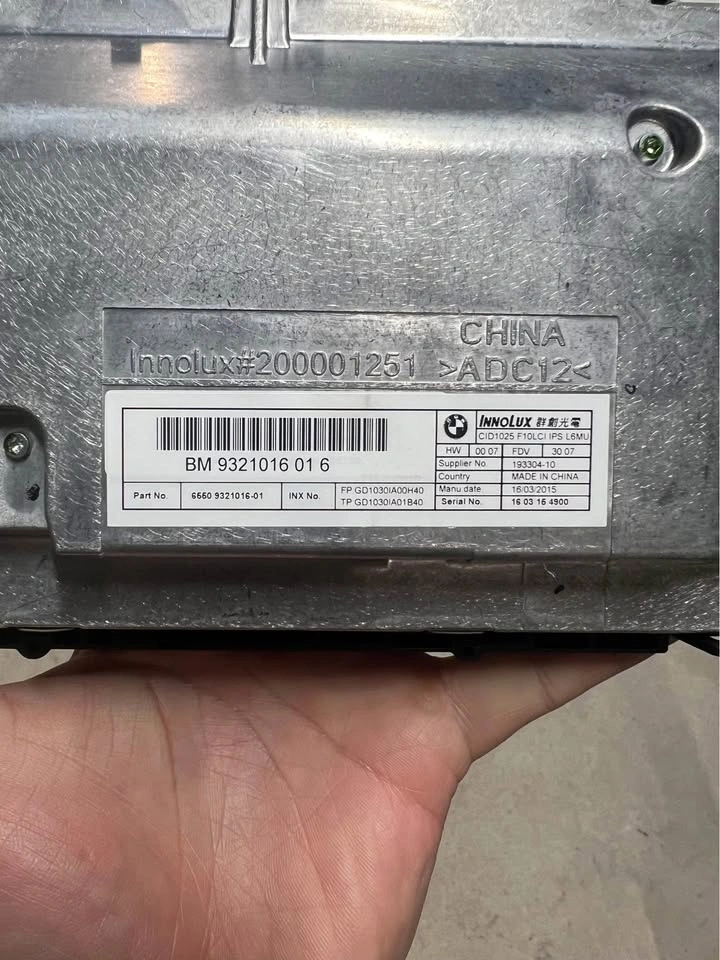 Selling an OEM BMW head unit display pulled from a 2015 BMW 535i (F10 chassis). • Model: Innolux CID1025 F10LCI IPS L6MU • Part Number: 6650 9321016-01 • Manufacture Date: March 2015 • Condition: Excellent, tested and fully functional • Comes with extra connecting cable This fits BMW 5 Series F10/F11 models (2014-2016 LCI facelift) and possibly other BMW models with compatible iDrive systems. Perfect replacement if your current screen is damaged, flickering, or has dead pixels.