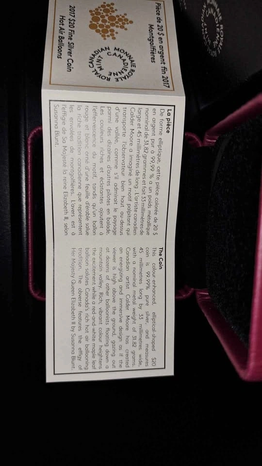 2017 Royal Canadian Mint Hot Air Balloons Silver Coin