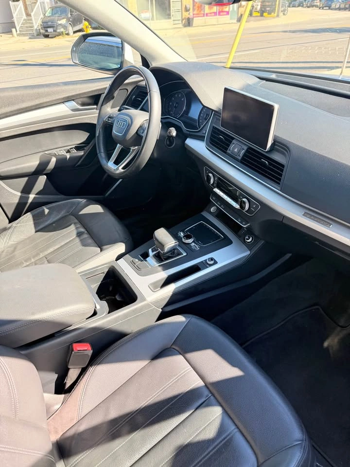 2018 Audi Q5 for sale. Black interior, white exterior. CLEAN CARFAX. ONE OWNER Fully loaded power windows, power doors, cooled/heated seats, A/C, bluetooth, panoramic sunroof, navigation, backup cam, LED headlights, aluminium alloys ***CARFAX verified, available upon request***