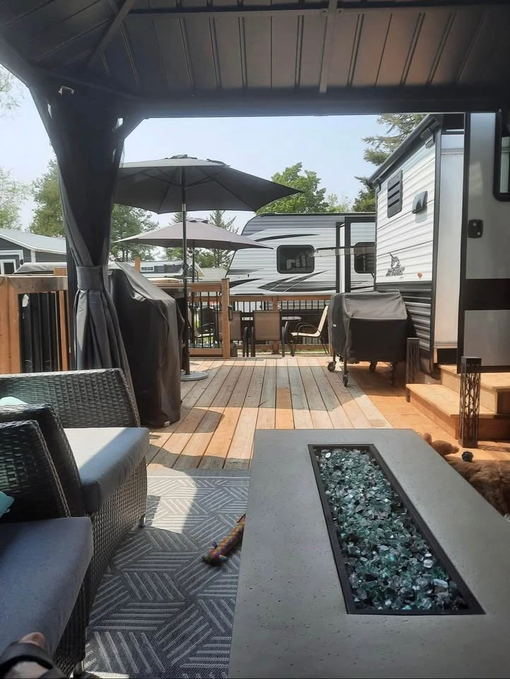 2022 Jayco for sale, parked at 15 Hawaiian Circle in Cedar Beach Resort on 9th line in Whitchurch/Stouffville. There is a full deck, gazebo, propane fireplace, wood burning fireplace, an outdoor sectional couch and love seat, patio table and 6 chairs, 2 umbrellas, bar table and 2 bar chairs, BBQ, shed, law mower and trimmer and 2001 Yamaha golf cart, all kitchen essentials included, 3 TV’s. The inside of the trailer has a great layout and has a fireplace and a king size bed in main bedroom! A must see. Asking $72,500 for everything. Turn key ready! Please message me to see it on weekends only - serious inquiries only.
