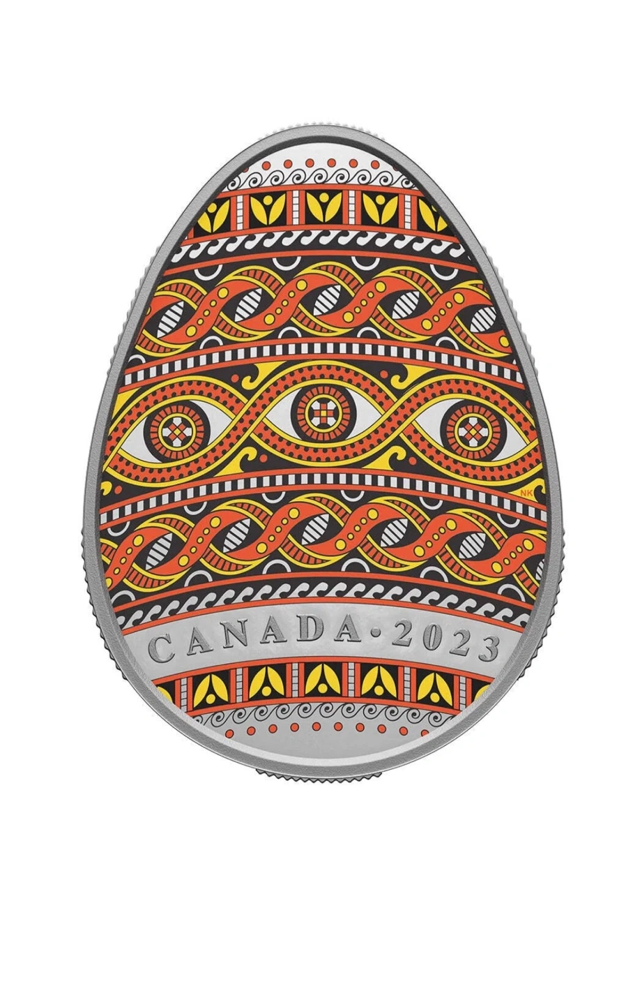 Selling a beautiful 2023 $20 fine silver Ukrainian Pysanka egg-shaped coin. It's in excellent condition and comes with its original box. A unique piece for any collector!
