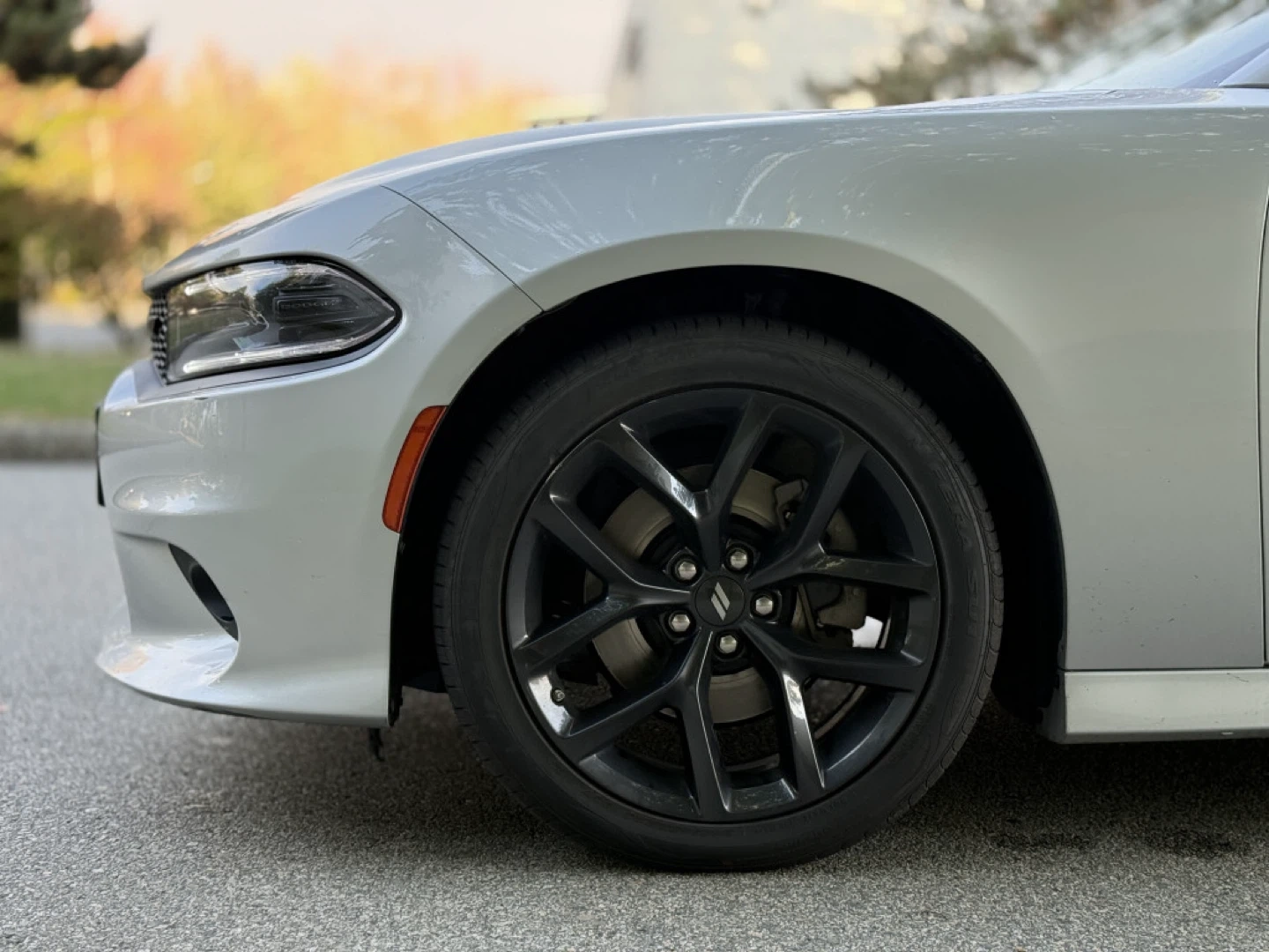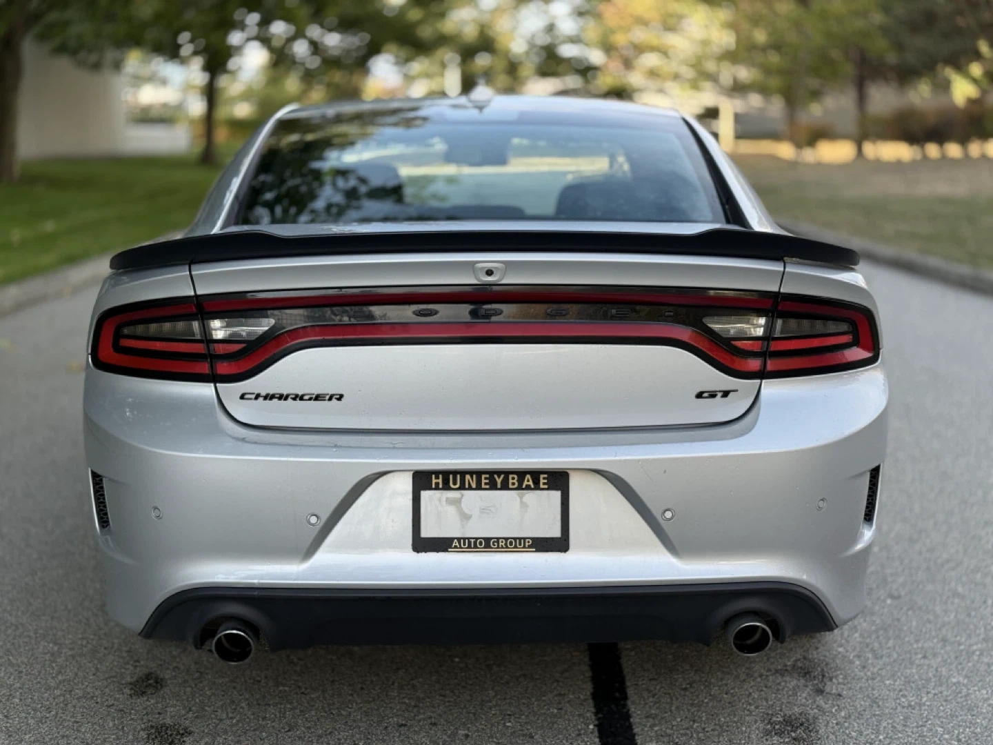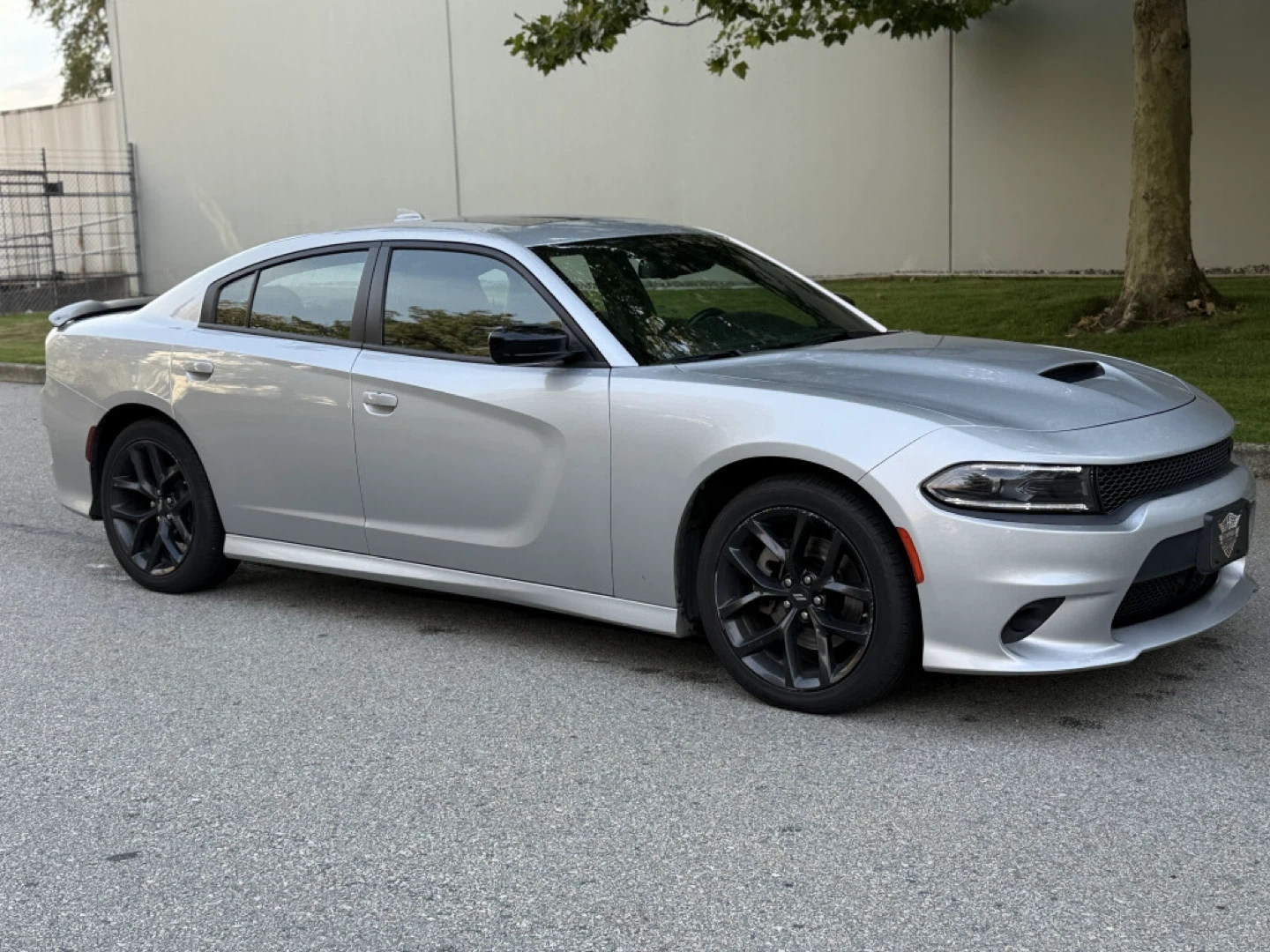 Selling a silver Dodge Charger GT. It's in great shape and ready for a new owner! Features include stylish black wheels and a sleek spoiler. Don't miss out!