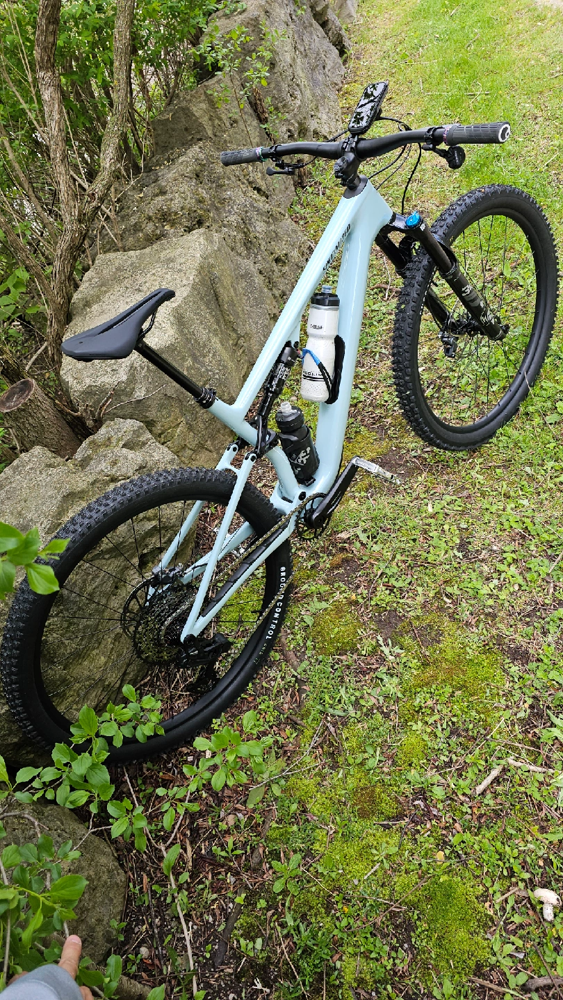 The most capable 130/120 trail bike Full F11 Carbon build 29" Wheelset DM for full Part spec Size: L Note: - Garmin Edge 1050 w/ straight Garmin mount (optional) - Full tailored ride wrapped - Silver Race Face Turbine pedals - Ergon Evo Slim grips