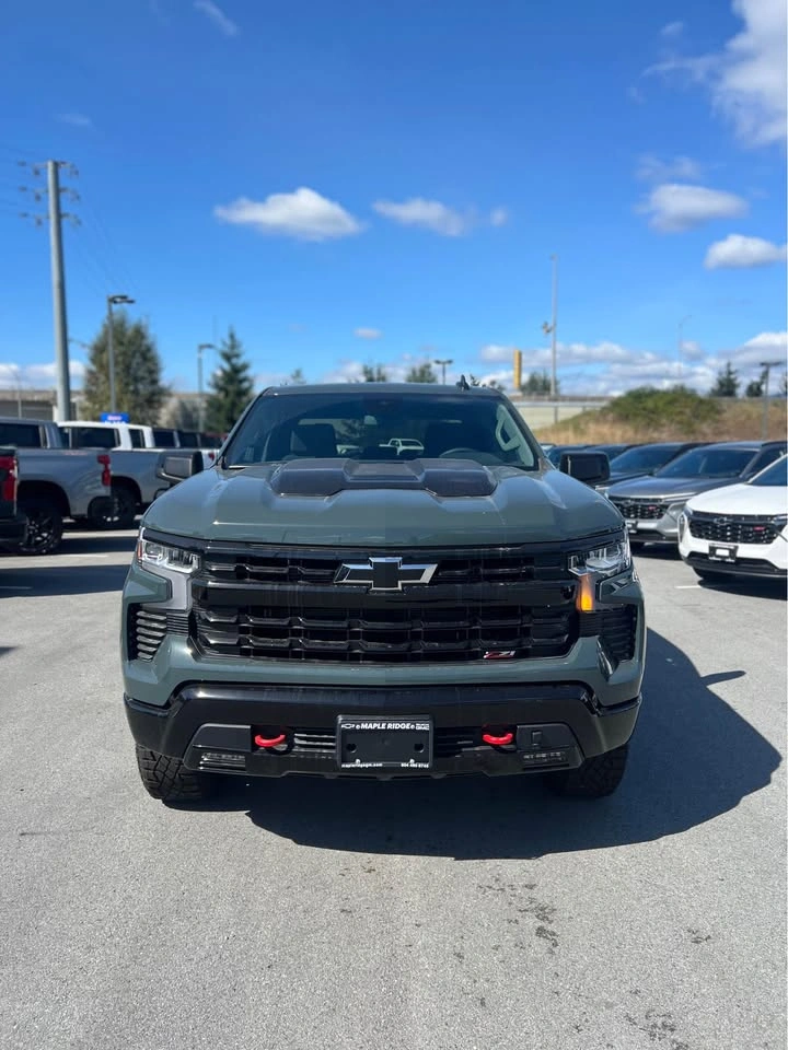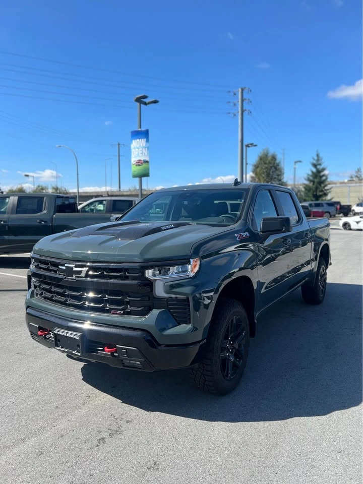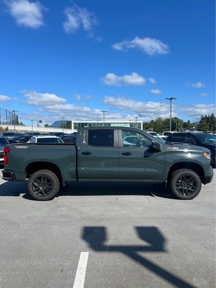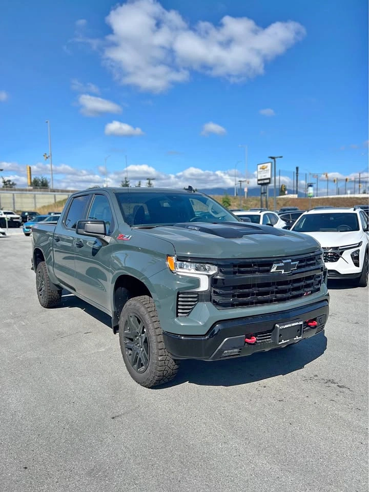 2026 Chevrolet Silverado 1500 LT Trail Boss with a 3.0L Duramax Diesel engine, Crew Cab Short Box, and Cypress Grey exterior. It features front bucket seats, a bed spray liner, and a Multi-flex tailgate. Contact Chase: 604*800*1604 Looking for another color, trim, spec, etc.? Let me know! More available with new vehicles arriving daily!