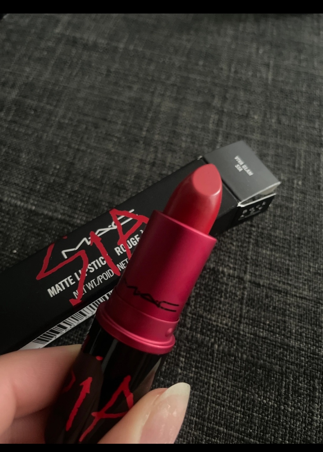 Color is Viva Glam SIA. Brand new, in box. It’s described as “neutral-toned, medium-dark red with a matte finish”. Price is firm.