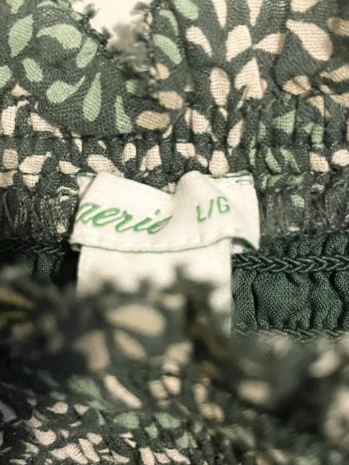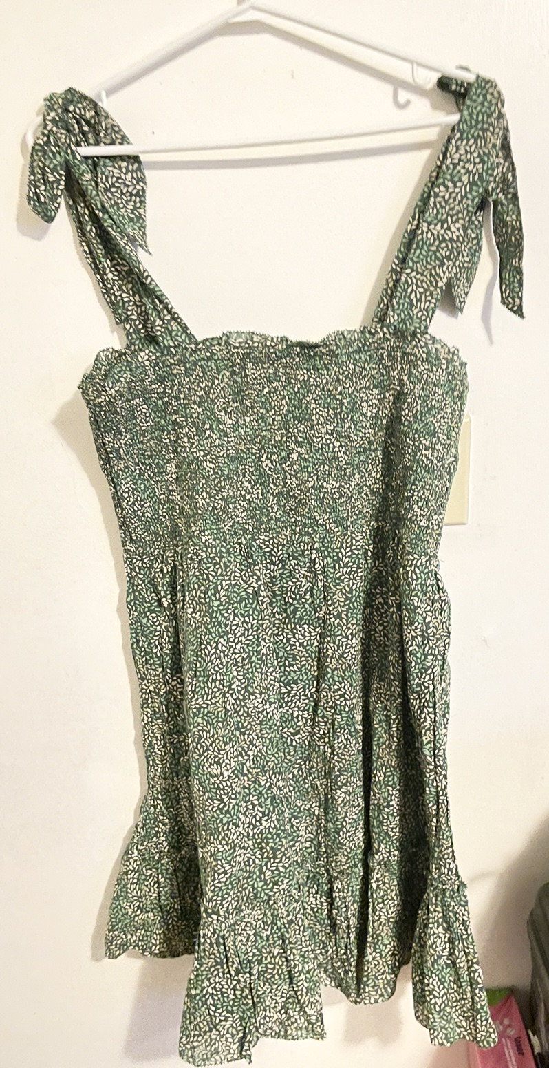 Sz L women Aerie dress green Floral Print Shirred Tie Shoulder Frill Trim Cami Dress