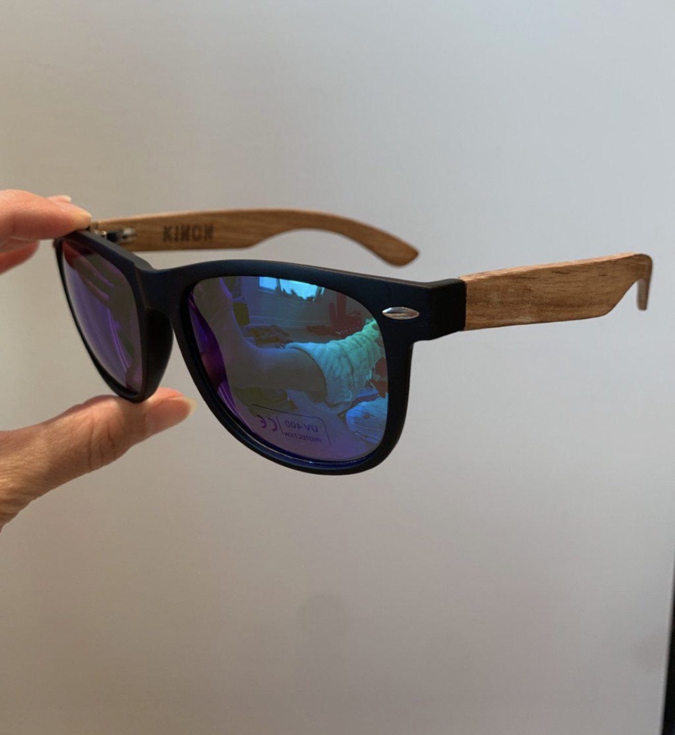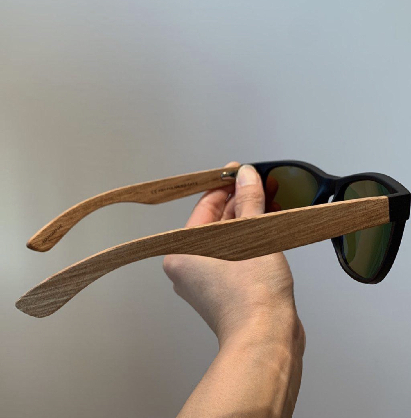 Removed from packaging for photos only Glasses have bamboo arms and comes with case Unisex glasses