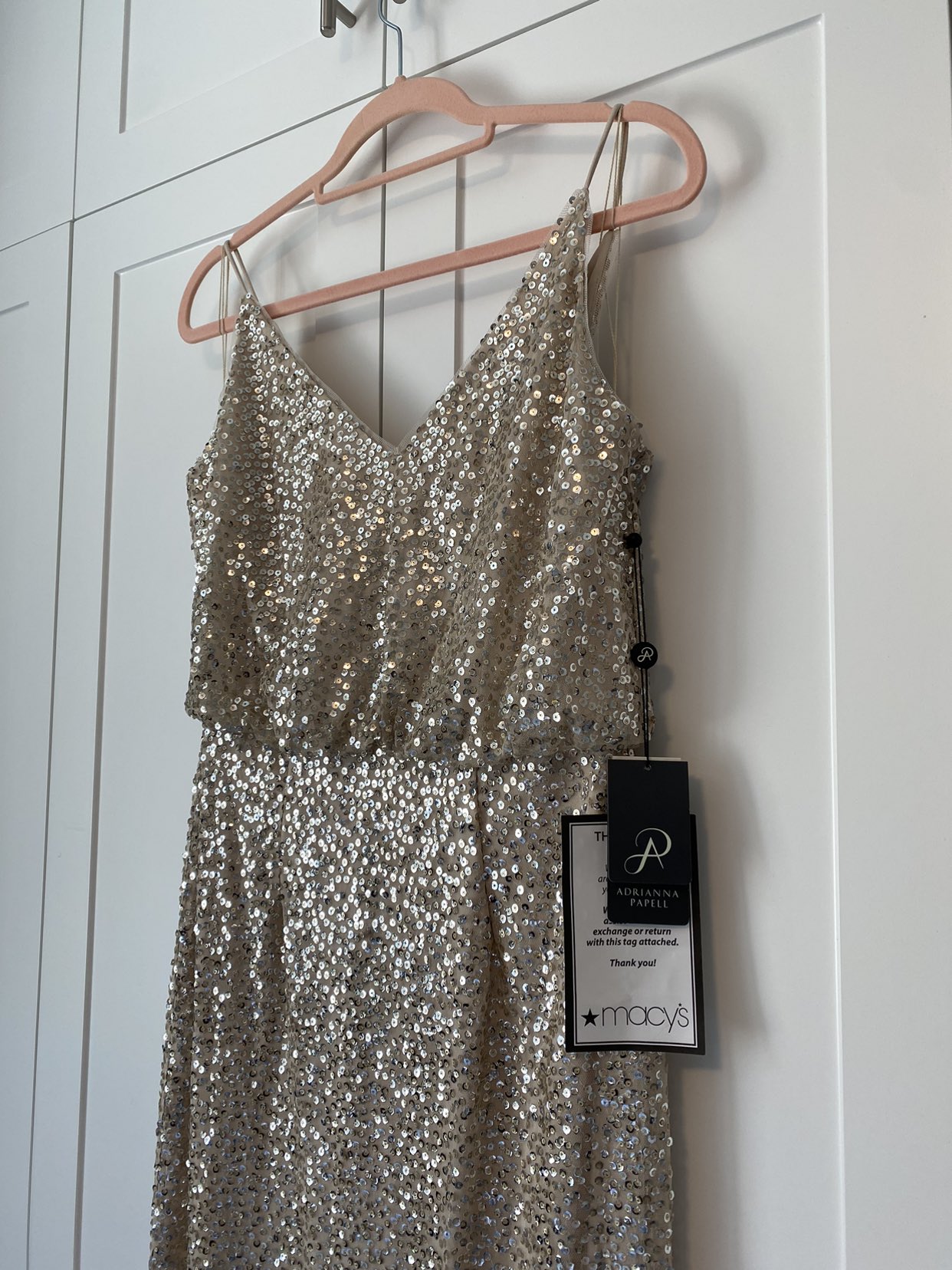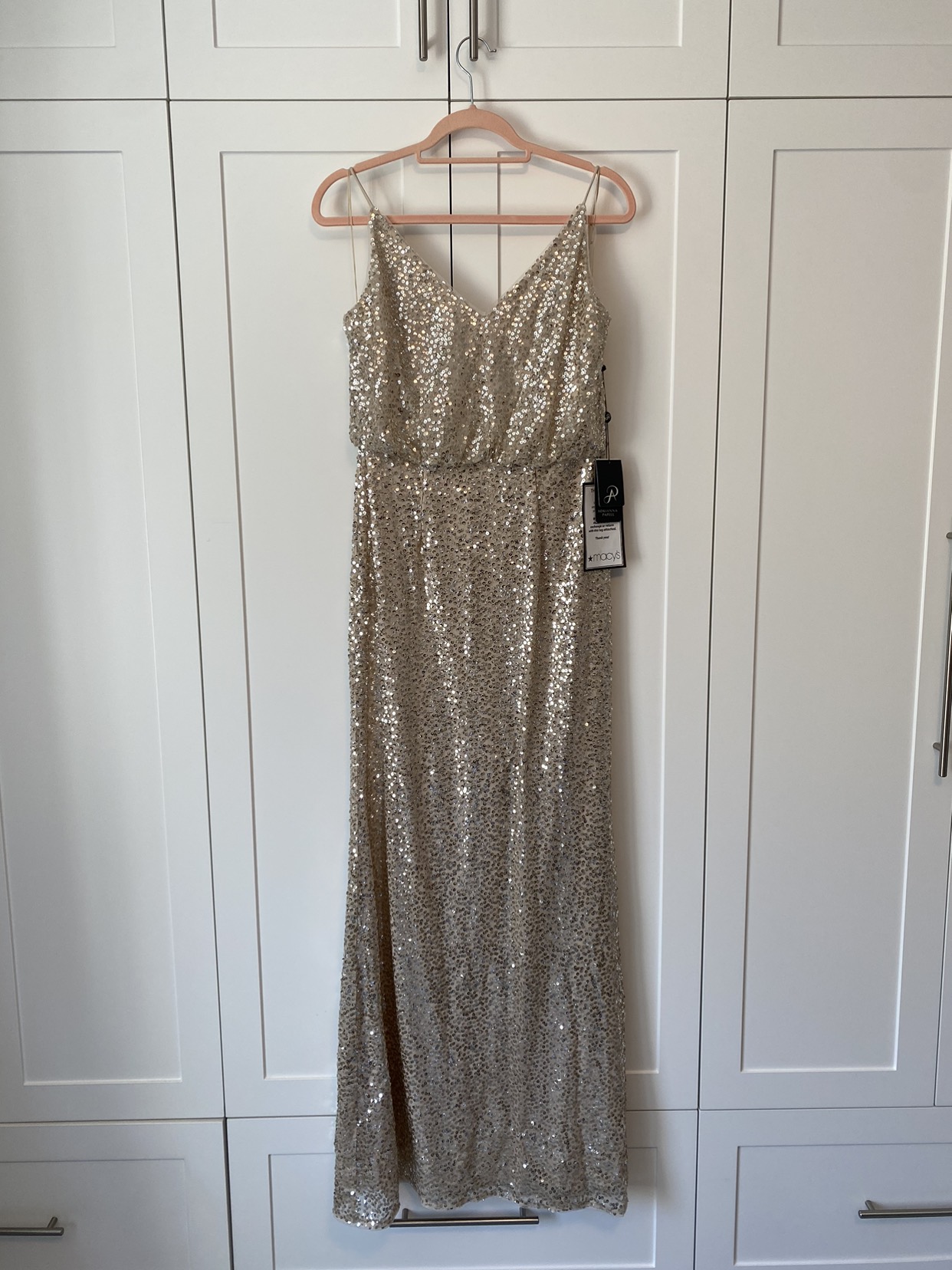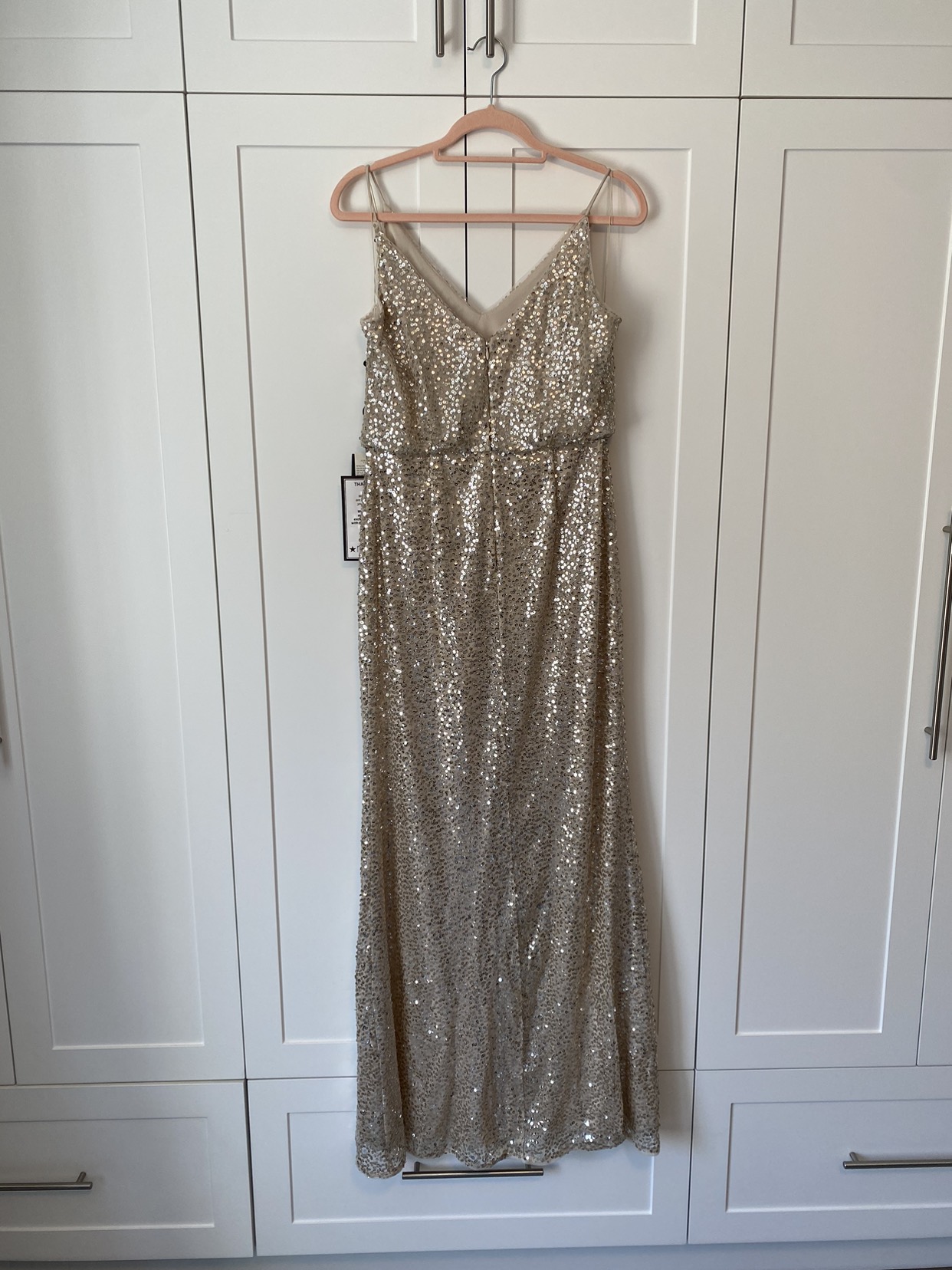 Purchased new from Macy’s. Only tried on once, never worn. Perfect for prom, summer wedding or an engagement shoot! Original price $179.00 US + tax. **please note: it was shipped from the US, and the security tag was never removed. Will have to remove yourself, or bring to a store to have removed **