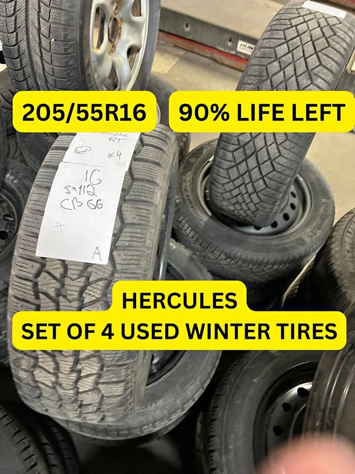 Set of 4 used winter tires, Hercules Avalanche RT, with 90% tread life left. Please Note: Some photos may show tires mounted on rims — rims are not included. Pricing includes installation and balancing on your existing rims. There are no hidden fees — only HST is added at checkout. We also stock a wide selection of new and used alloy and steel wheels. To ensure a perfect fit for your vehicle, please provide your make, model, and year, and we’ll offer you a range of options tailored to your budget. Looking for high-quality tires without the high price tag? At All About Tire & Wheel, we offer both brand-new and gently used tires — all inspected, warrantied, and ready for same-day installation. ✅ What’s Included: FREE Installation & Balancing on all new and used tires NO Disposal Fees – absolutely zero hidden costs 30-Day Satisfaction Warranty on all used tires Thousands of Tires In-Stock – all brands, all sizes Same-Day Appointments available Full Auto Services on-site Tire Changeover Special – Included FREE with Service: Tire inspection Inflation adjustment TPMS relearn Tire bags OEM-spec re-torque 💰 Pricing Highlights: On-Rim Changeover: From $60 Off-Rim Changeover: From $120 Tire Repair: $40 Wheel Lock Removal: From $20 Tire Storage (6 Months): $120 🛠️ Complete Auto Repair & Maintenance From brakes, oil changes, diagnostics, and alignments to suspension and engine services, our certified 310S technicians handle it all — using state-of-the-art equipment and professional care. ⭐ Why Choose Us? We’re Bradford’s largest tire and wheel shop, trusted for years. Our commitment to transparent pricing, professional service, and unbeatable value makes us the go-to destination for everything your vehicle needs — all under one roof.