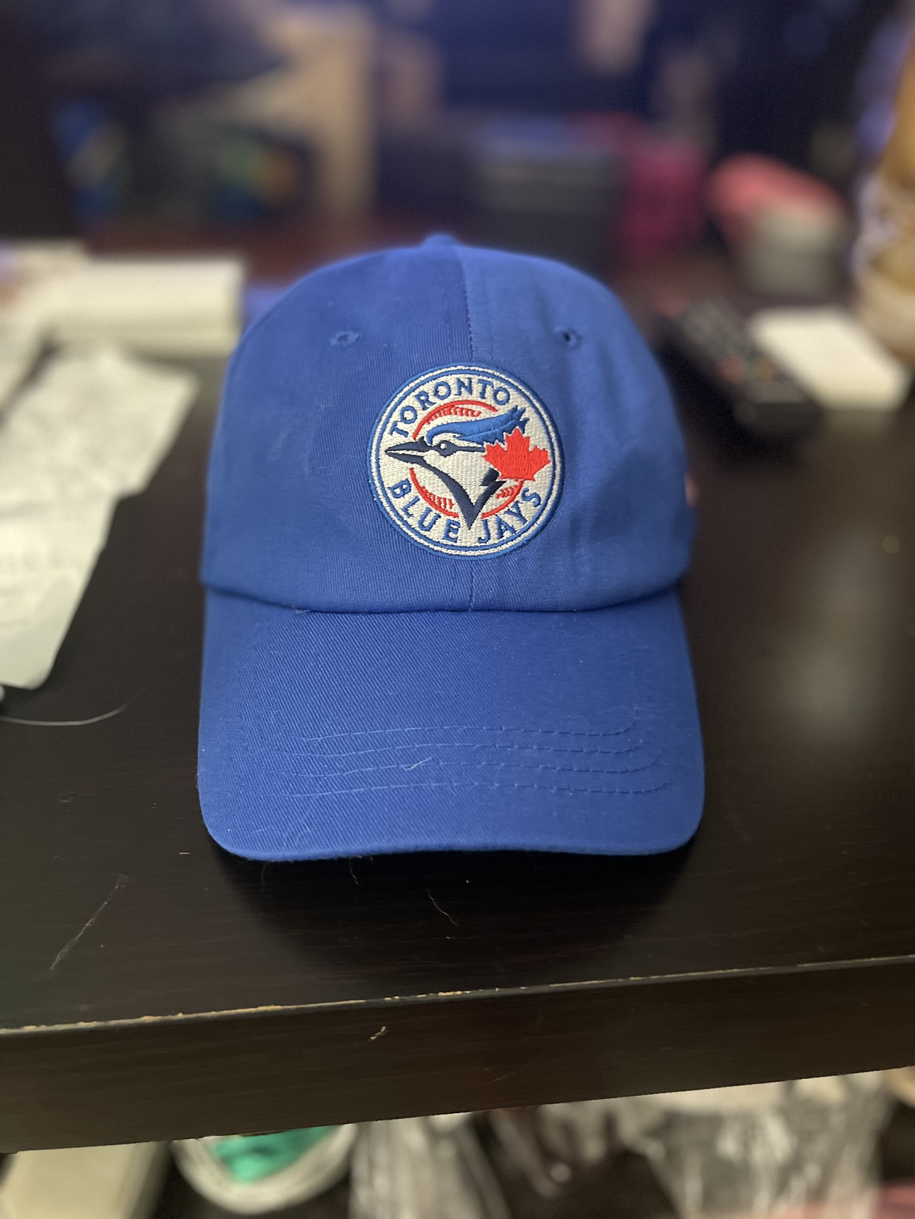•New Toronto Blue Jays Hat. Never worn, not my kinda style. •Has A velcro adjustable strap on back of hat to adjust your size. •Lobby Pickup.
