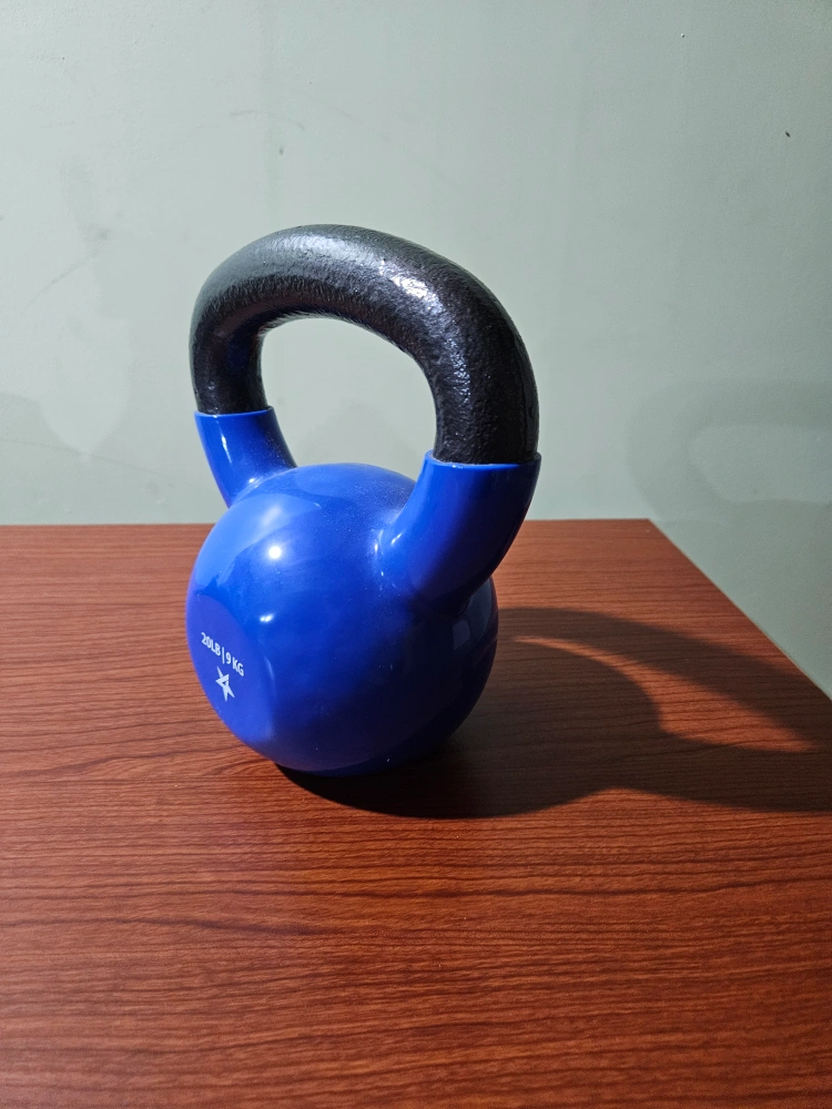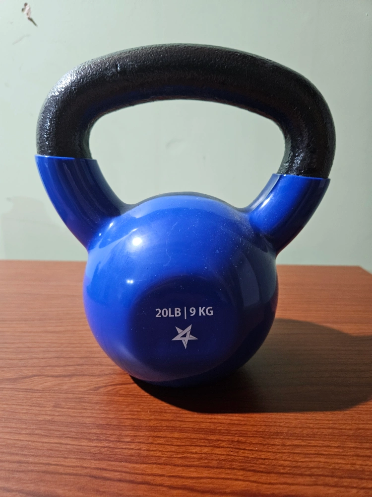 Selling a blue kettlebell weighing 20 lbs (9 kg). It's in great shape and ready for your workouts