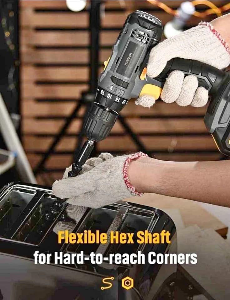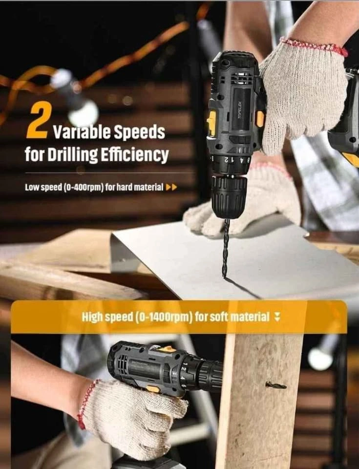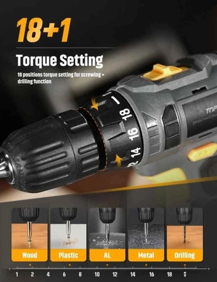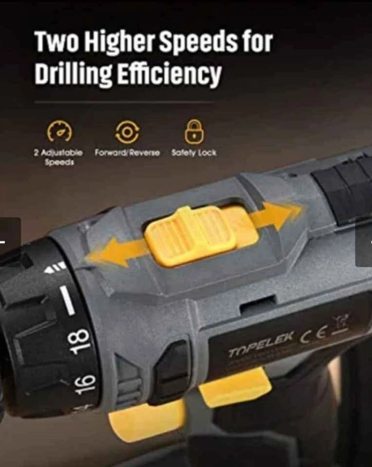 18-speed gear + drilling function. Torque adjustment accuracy to meet the different screwing needs of different materials without damaging the material itself. Retail Compare at $ 75 The TOPELEK cordless screwdriver with the forward / reverse button handles screwing and unscrewing tasks perfectly. Efficient drilling and 2 variable speeds. Powerful engine. Drilling with 2 variable speeds (0-400 and 0-1400 rpm). TOPELEK 20V drill bit is ideal for drilling wood, plastic, AL, metal materials, etc. All-metal drive and a 3/8-inch keyless grip ensure excellent accessory compatibility and maximum durability. 1500 mAh lithium ion battery capacity. The clearly visible battery indicator allows you to plan work smoothly. Thanks to the built-in smart chip screwdriver, the battery provides protection against short-circuiting, overcharging, overcharging, excessive current, and excessive temperature to extend battery life. Lightweight and comfortable design. The device weighs just 1.3kg. A sturdy belt clip is included to hang the drill on the belt for easier working. The rubber-coated handle allows you to comfortably hold and operate the device with one hand; the flexible shaft can be used in places where access is difficult; The LED light illuminates the drilling space.